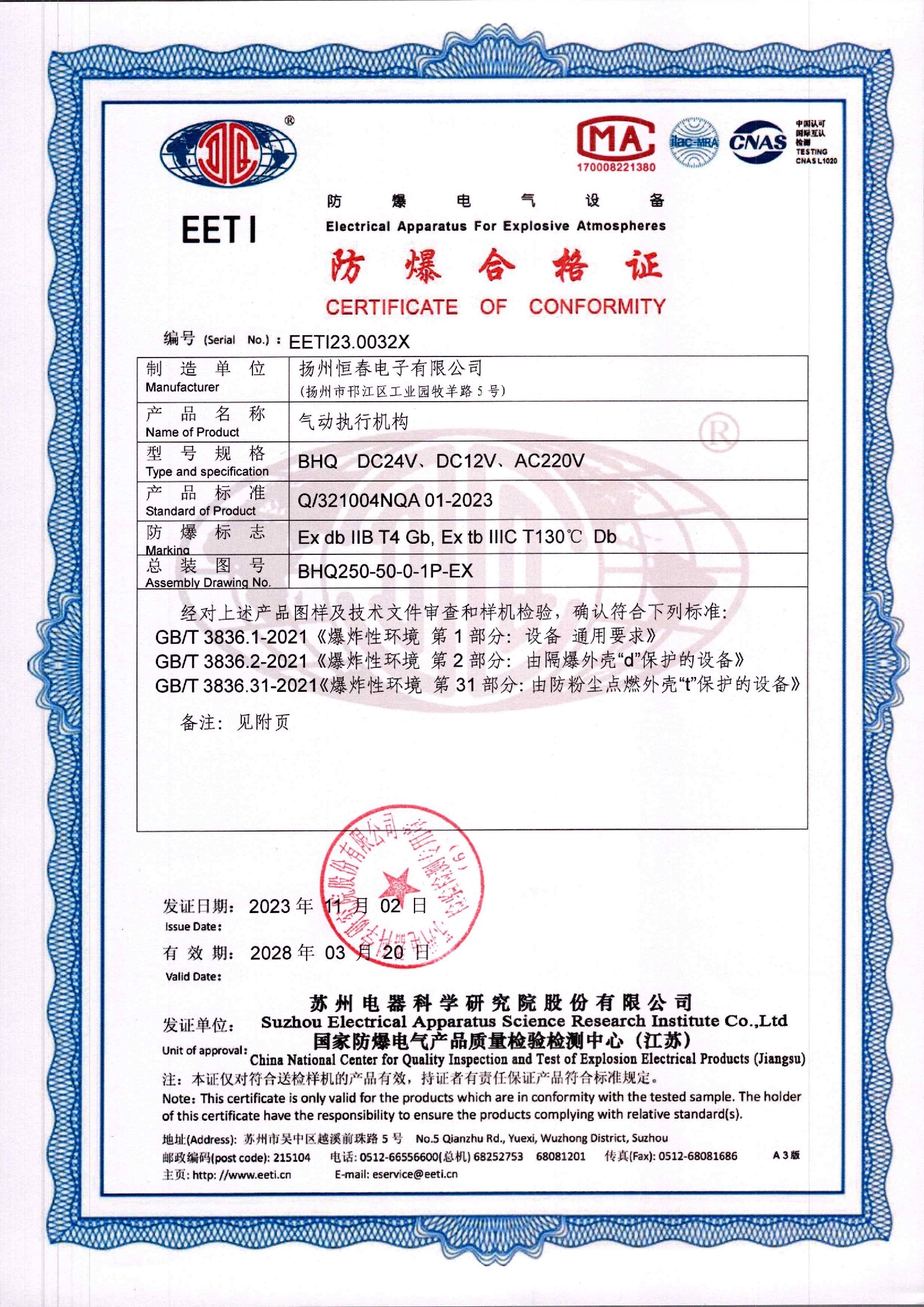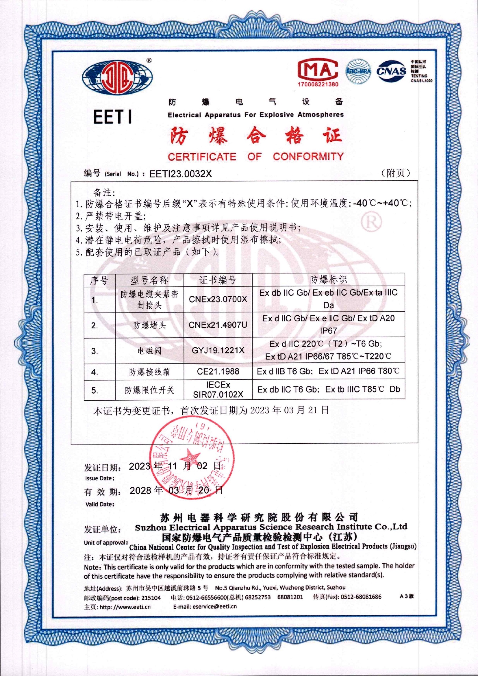 EETI23.0032X 防爆合格证