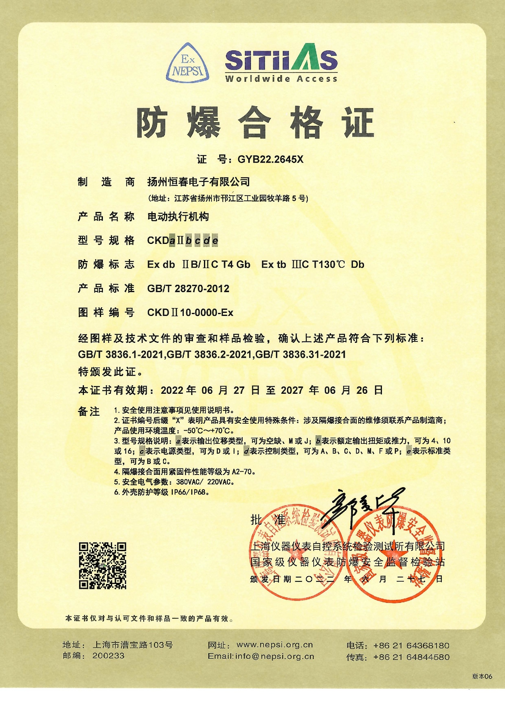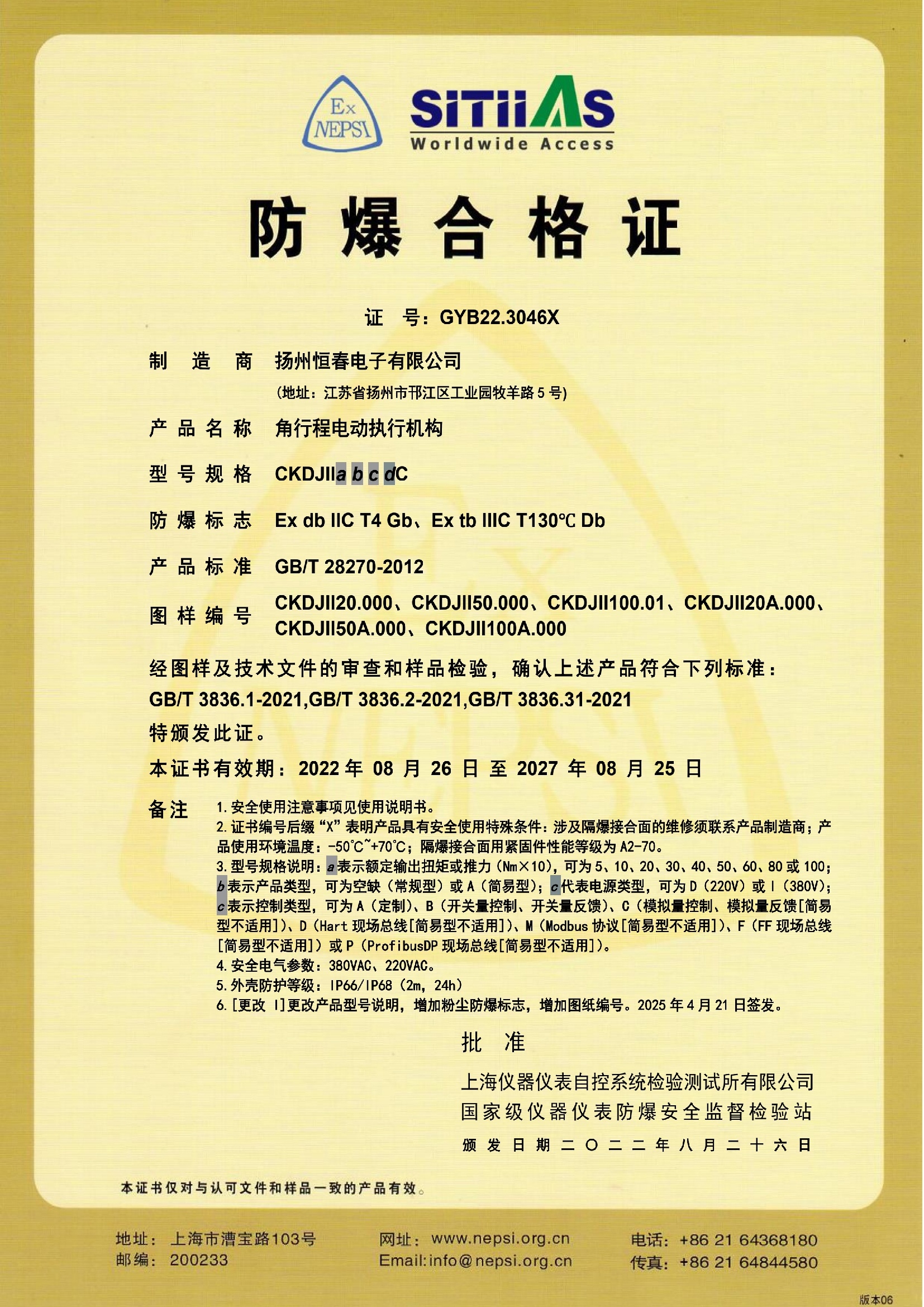 GYB22.3046X 防爆合格证