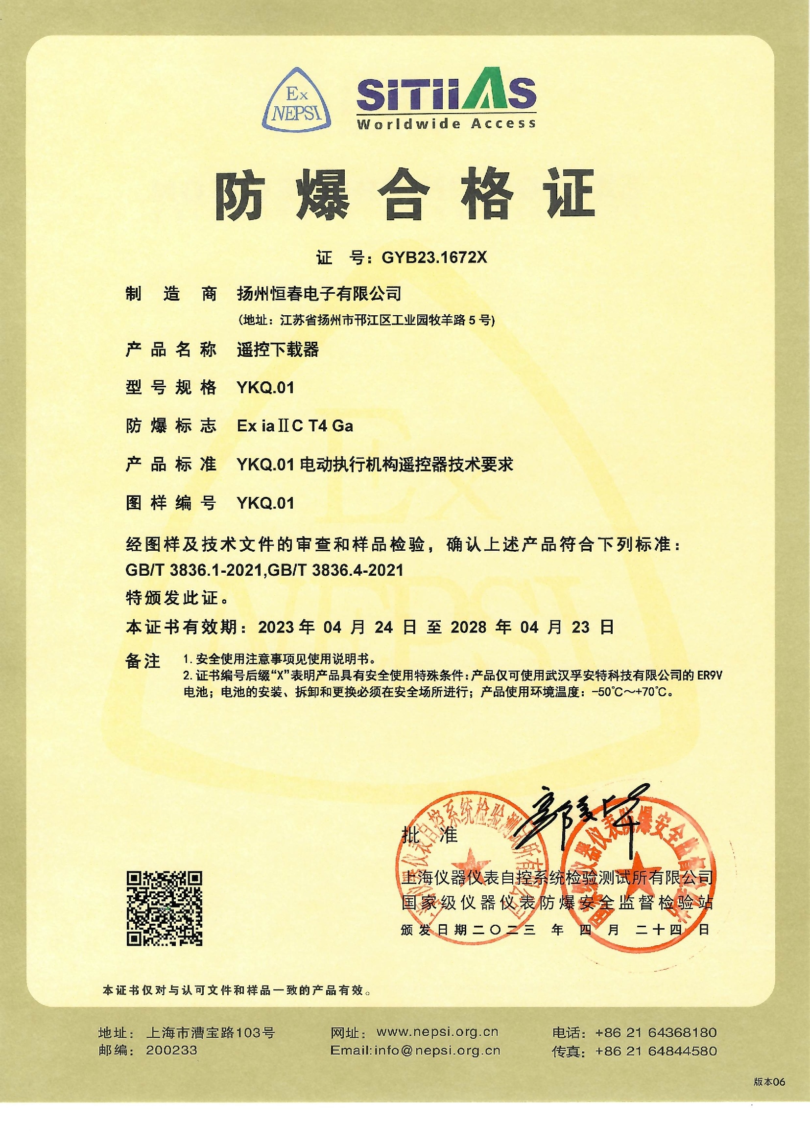 GYB23.1672X遥控器防爆合格证