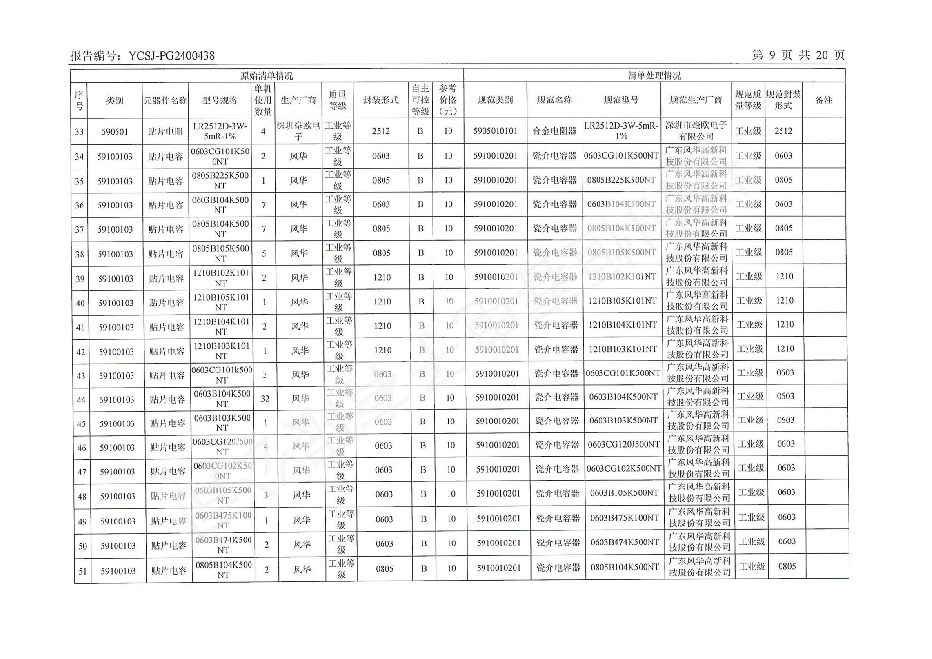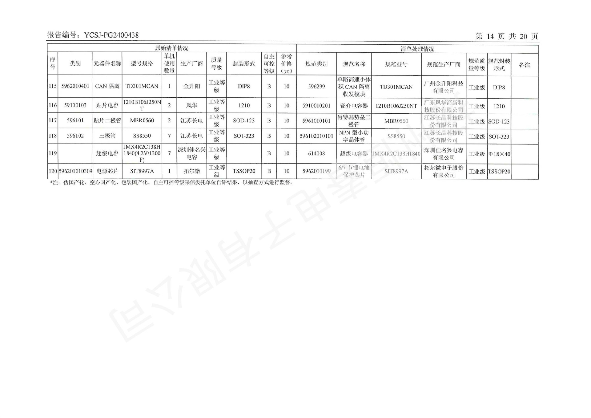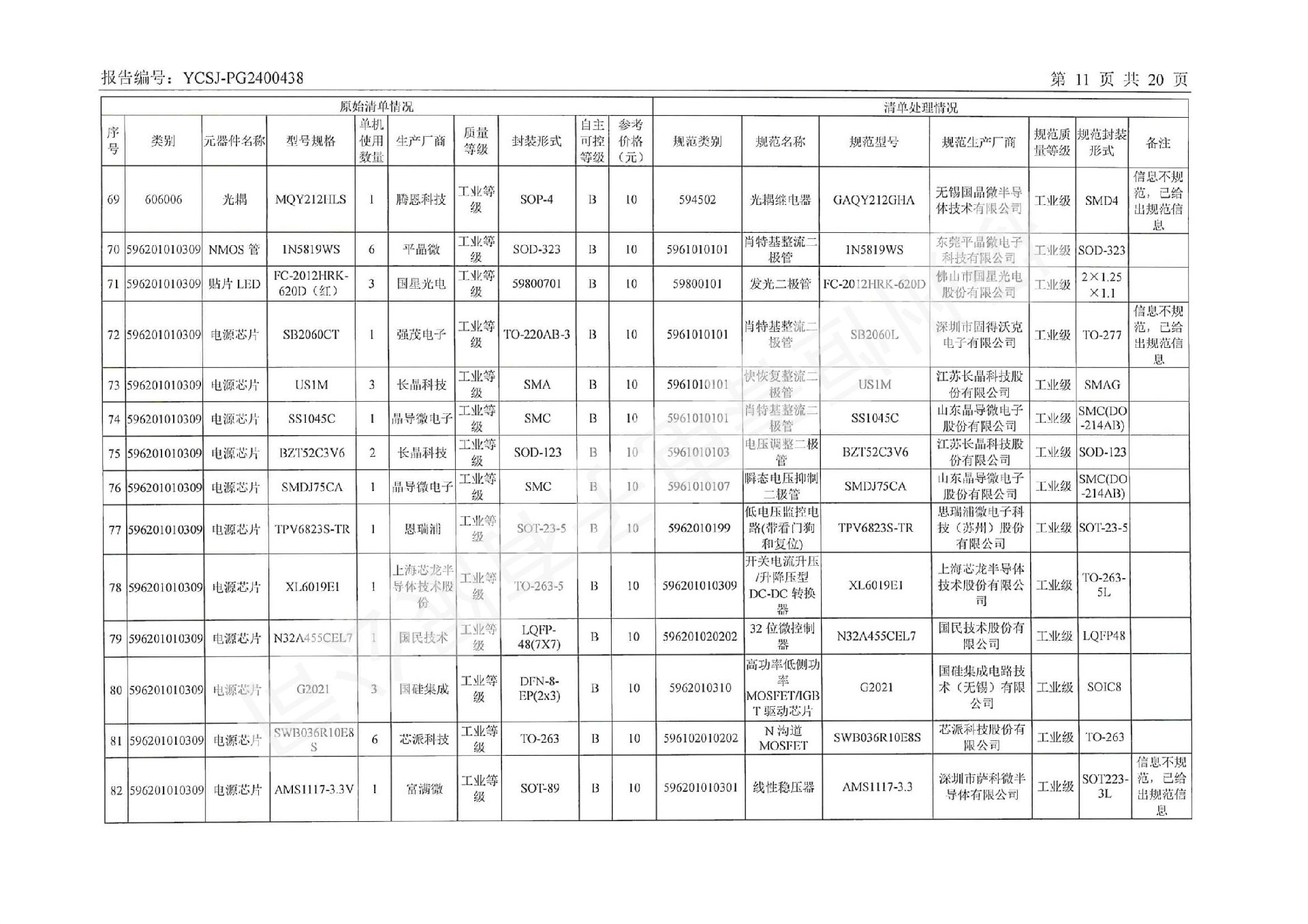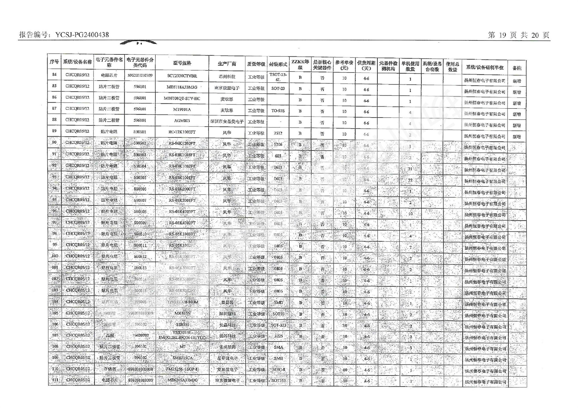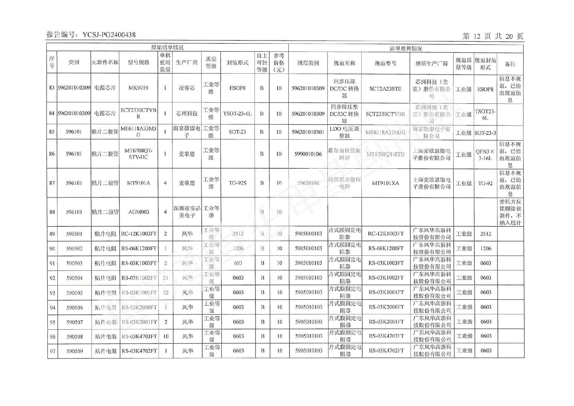 YCSJ-PG2400438 电子元器件清单评估报告