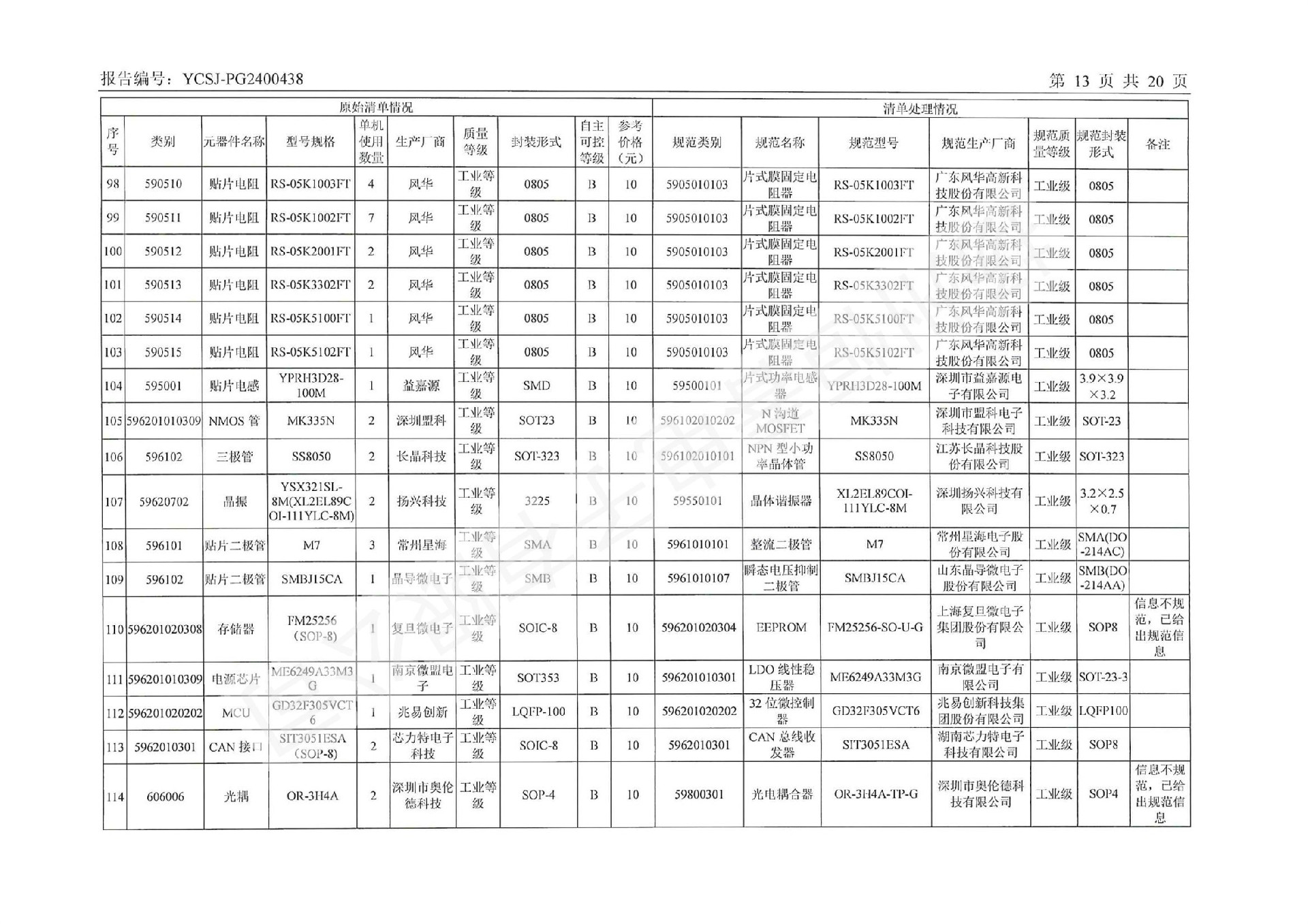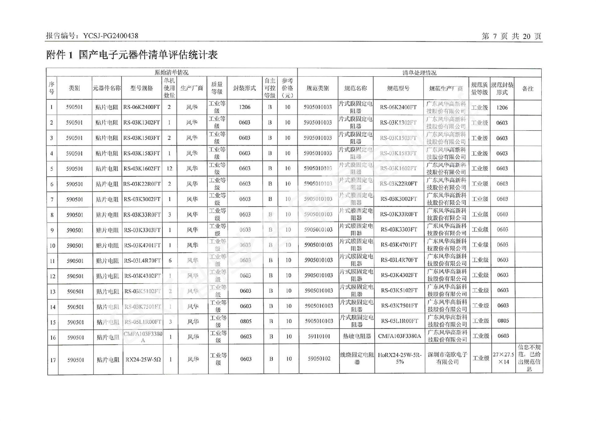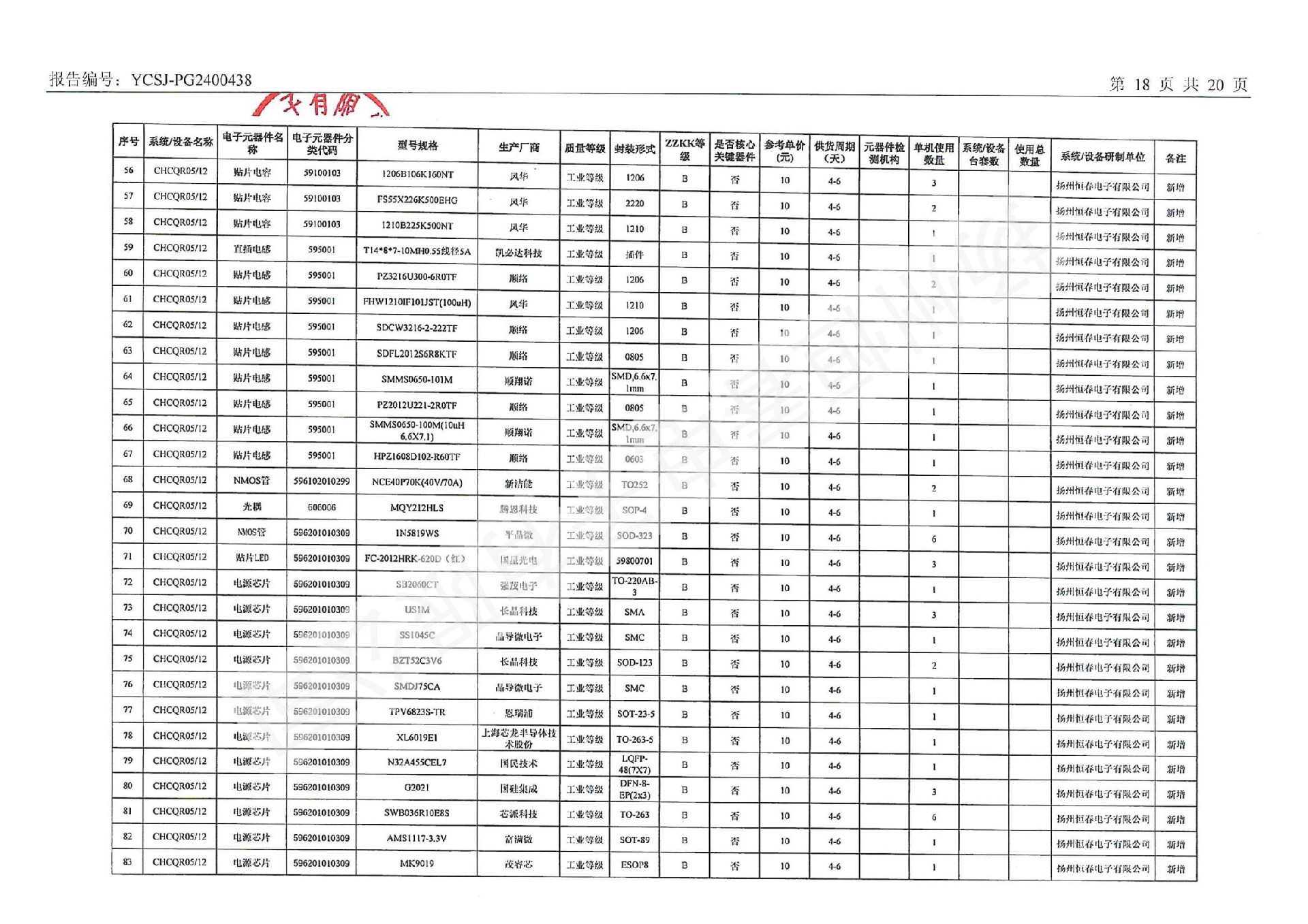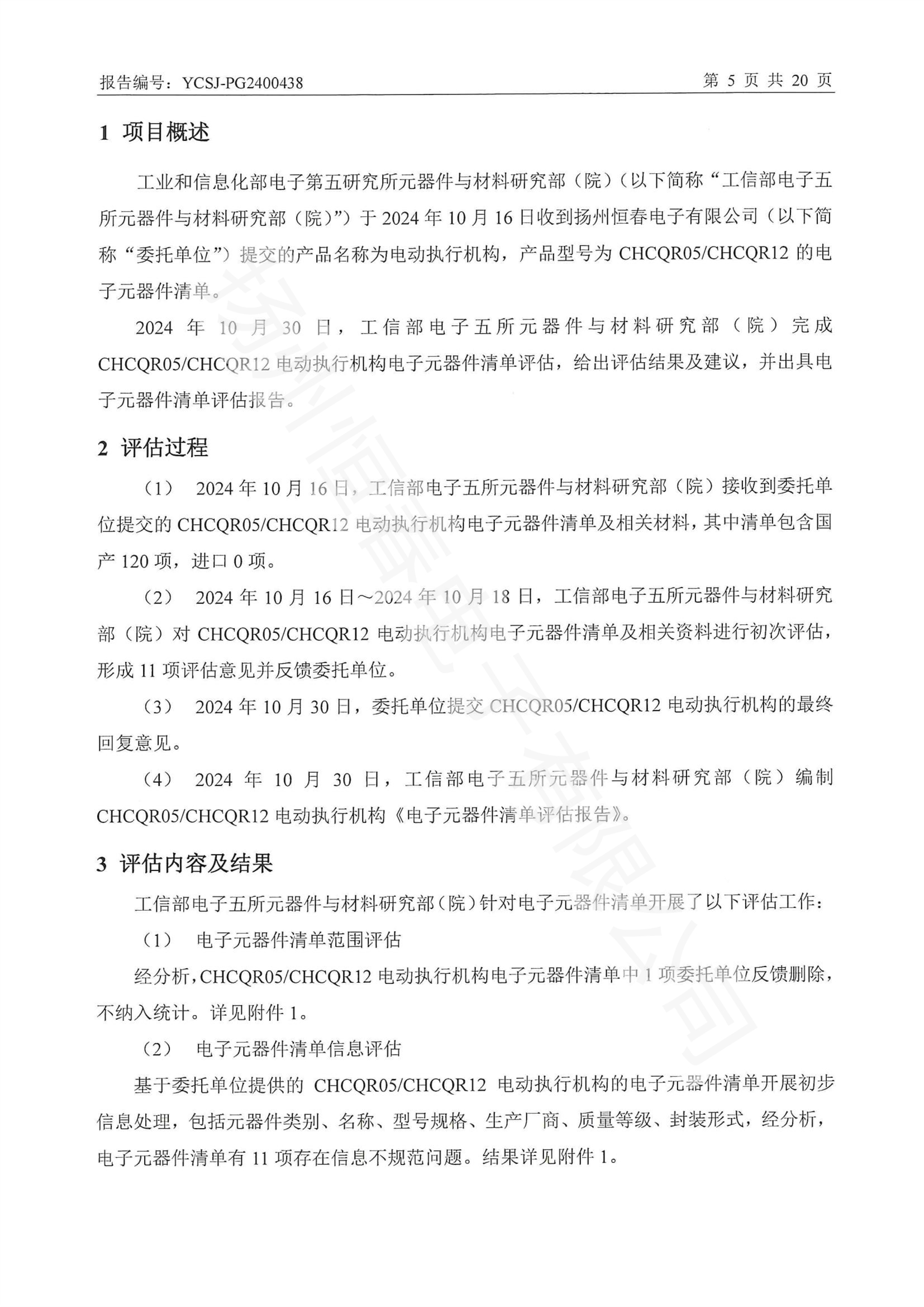 YCSJ-PG2400438 电子元器件清单评估报告