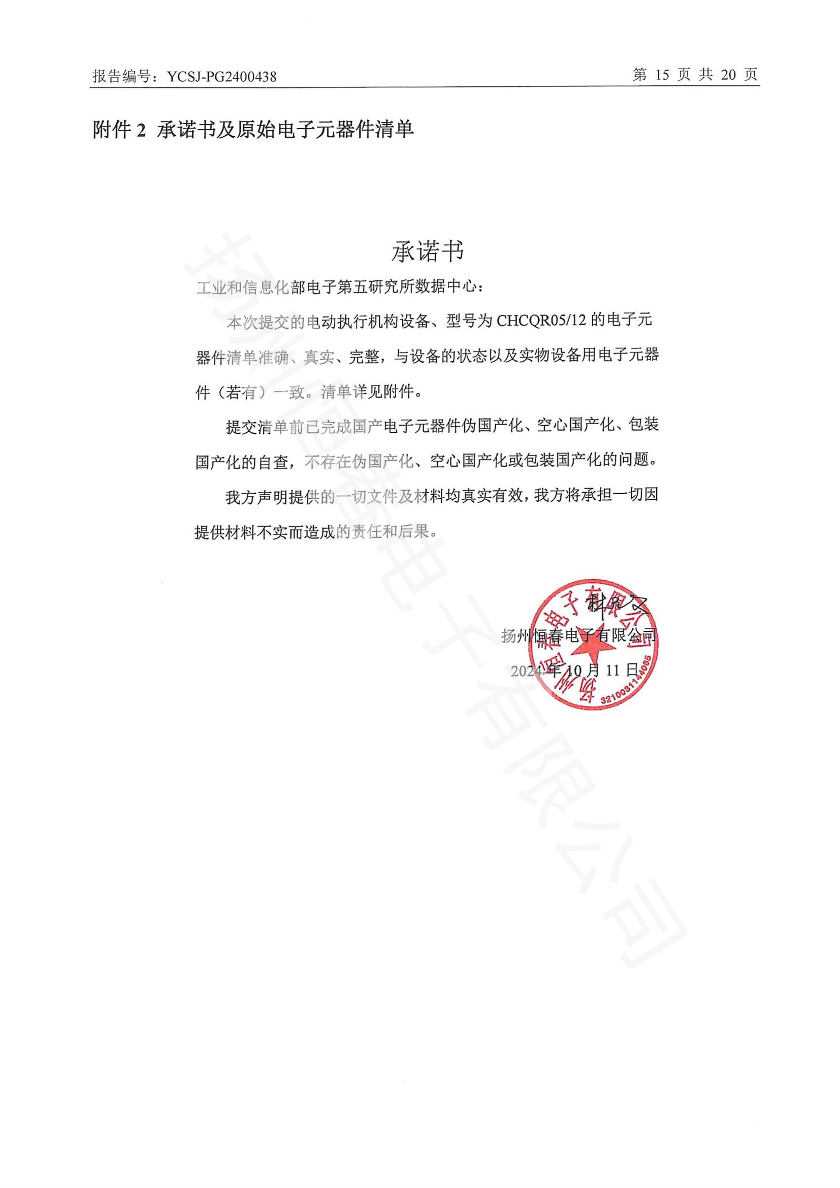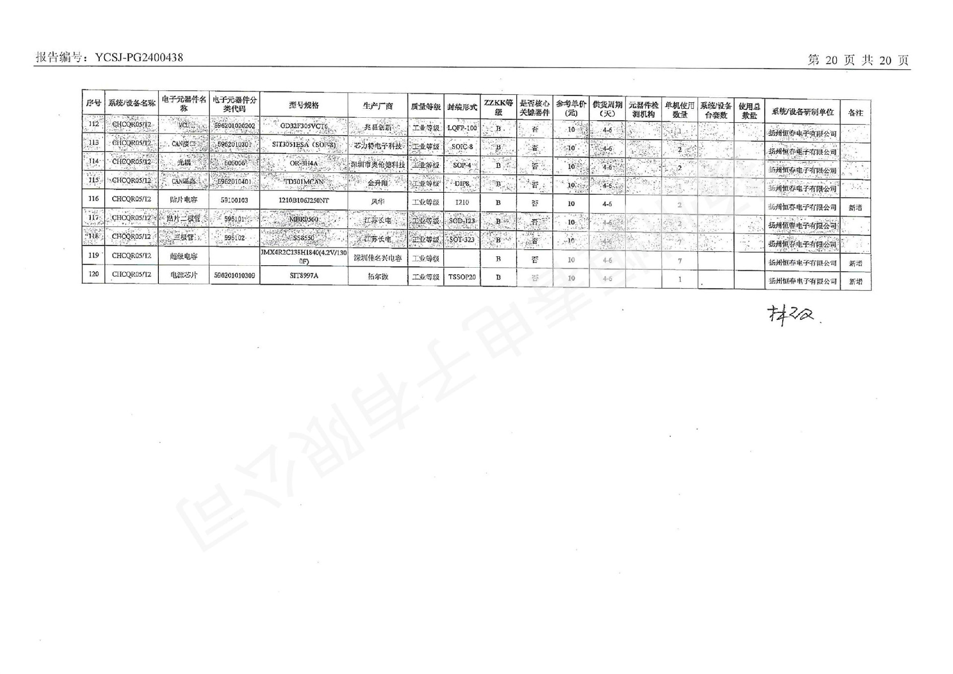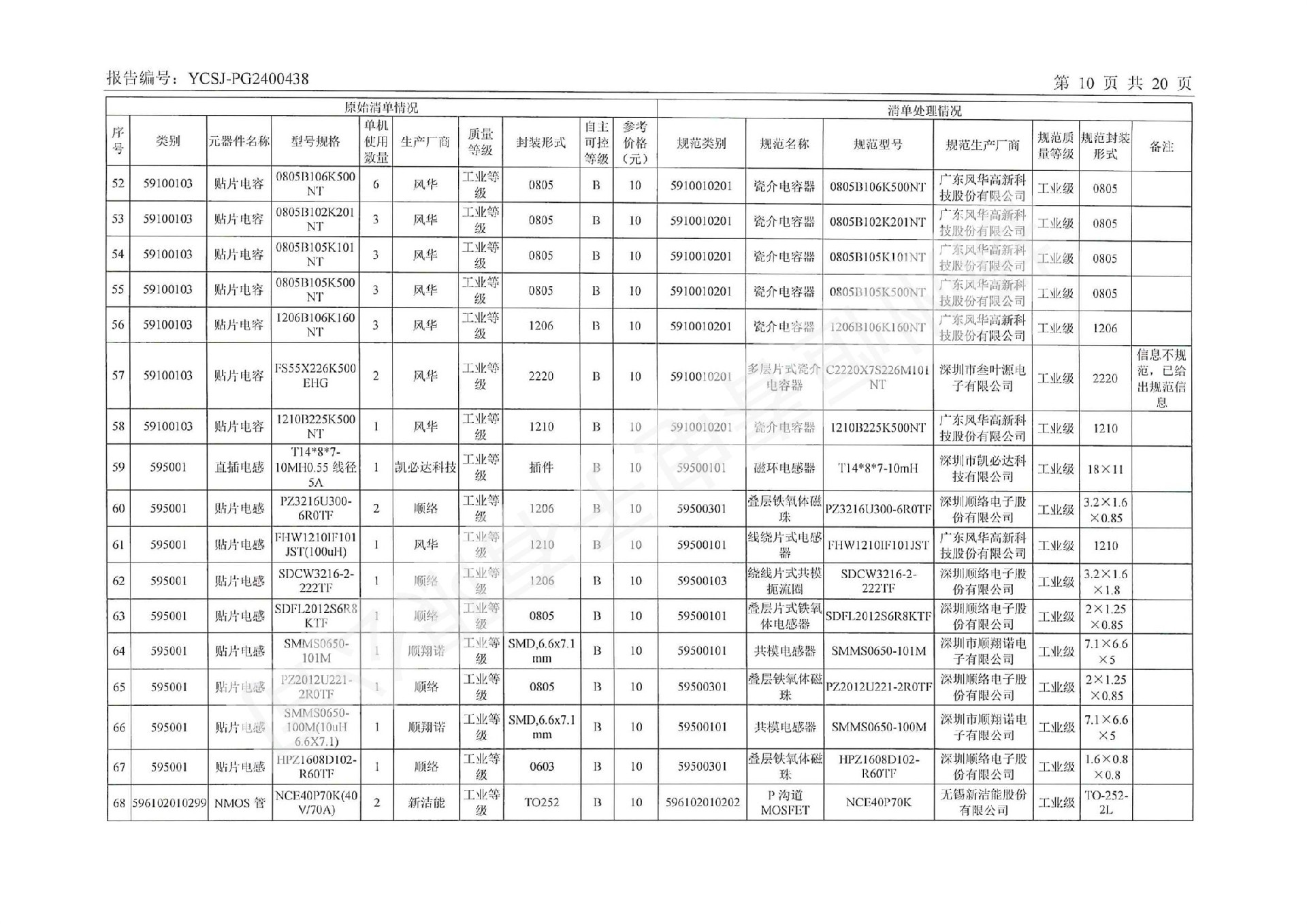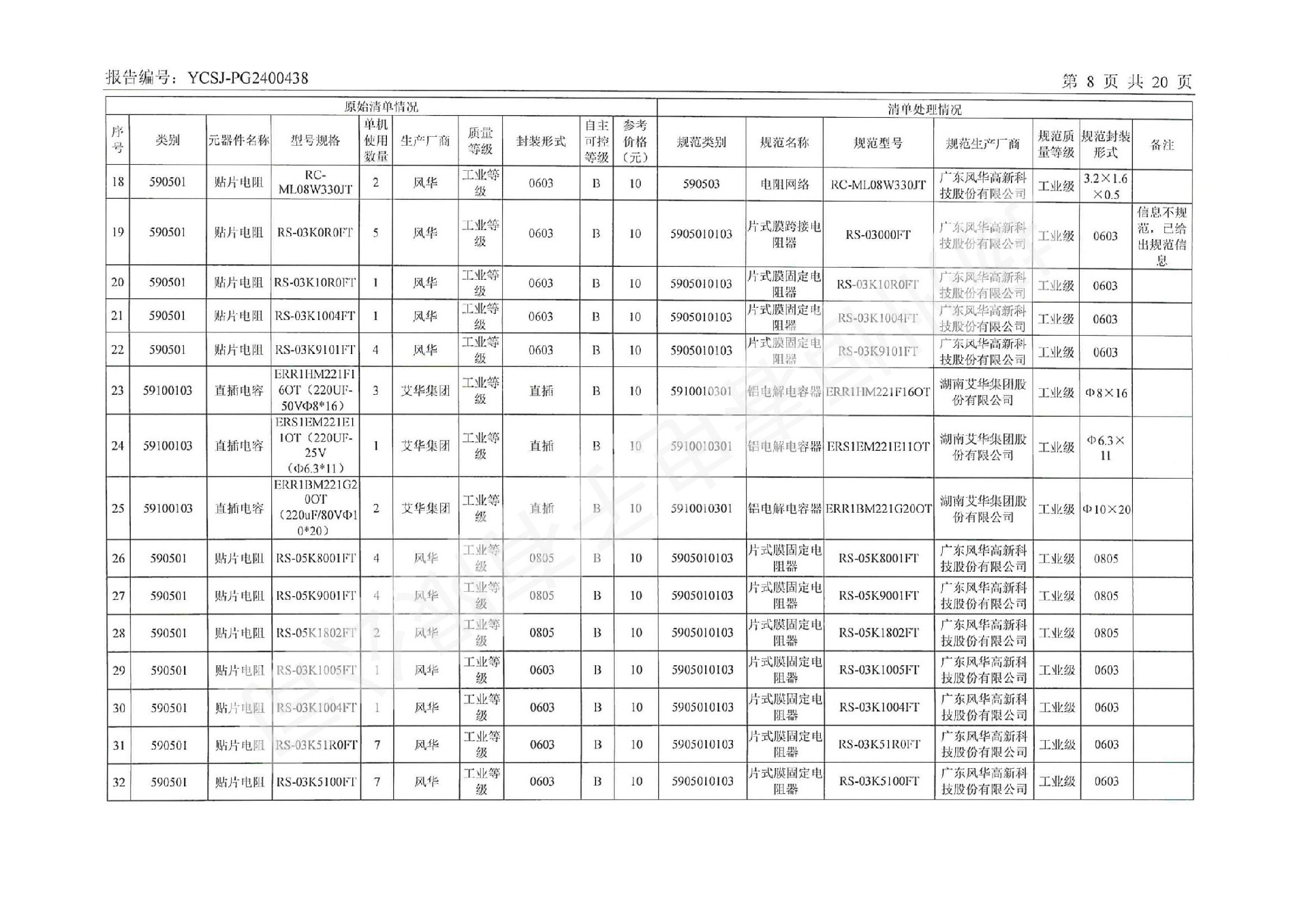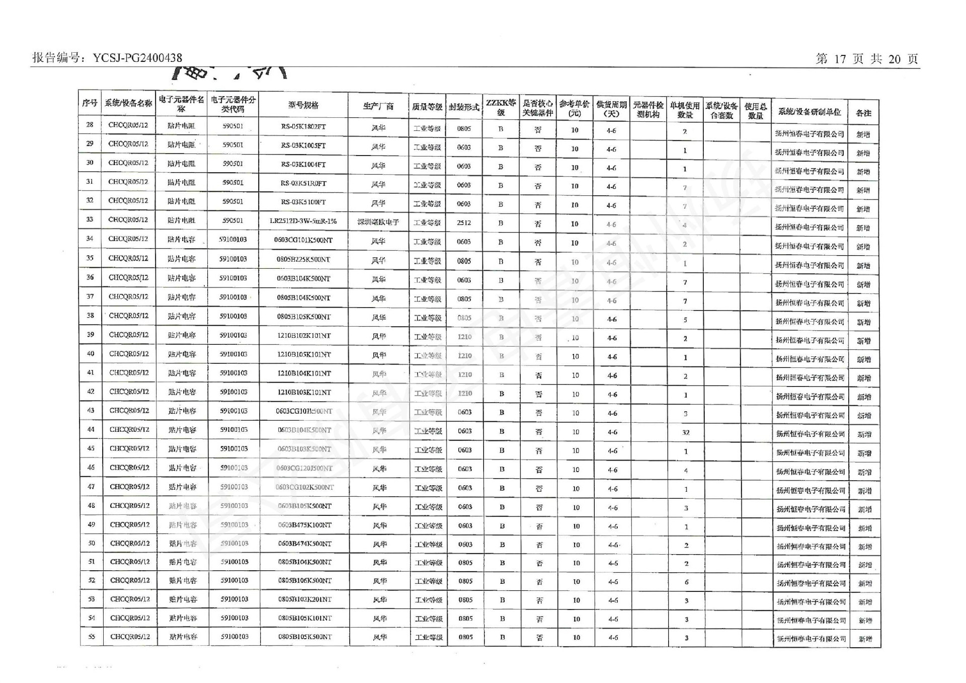 YCSJ-PG2400438 电子元器件清单评估报告