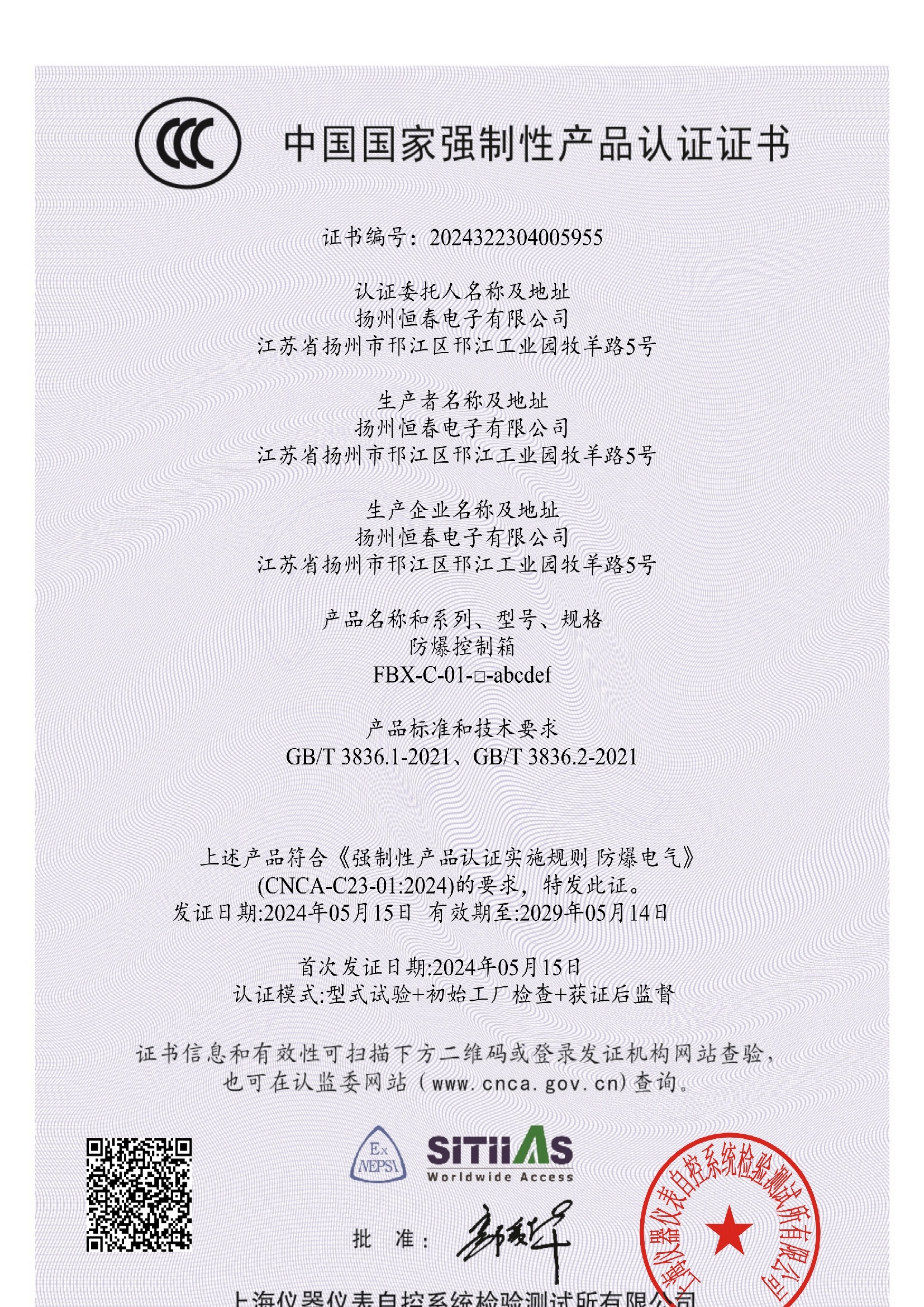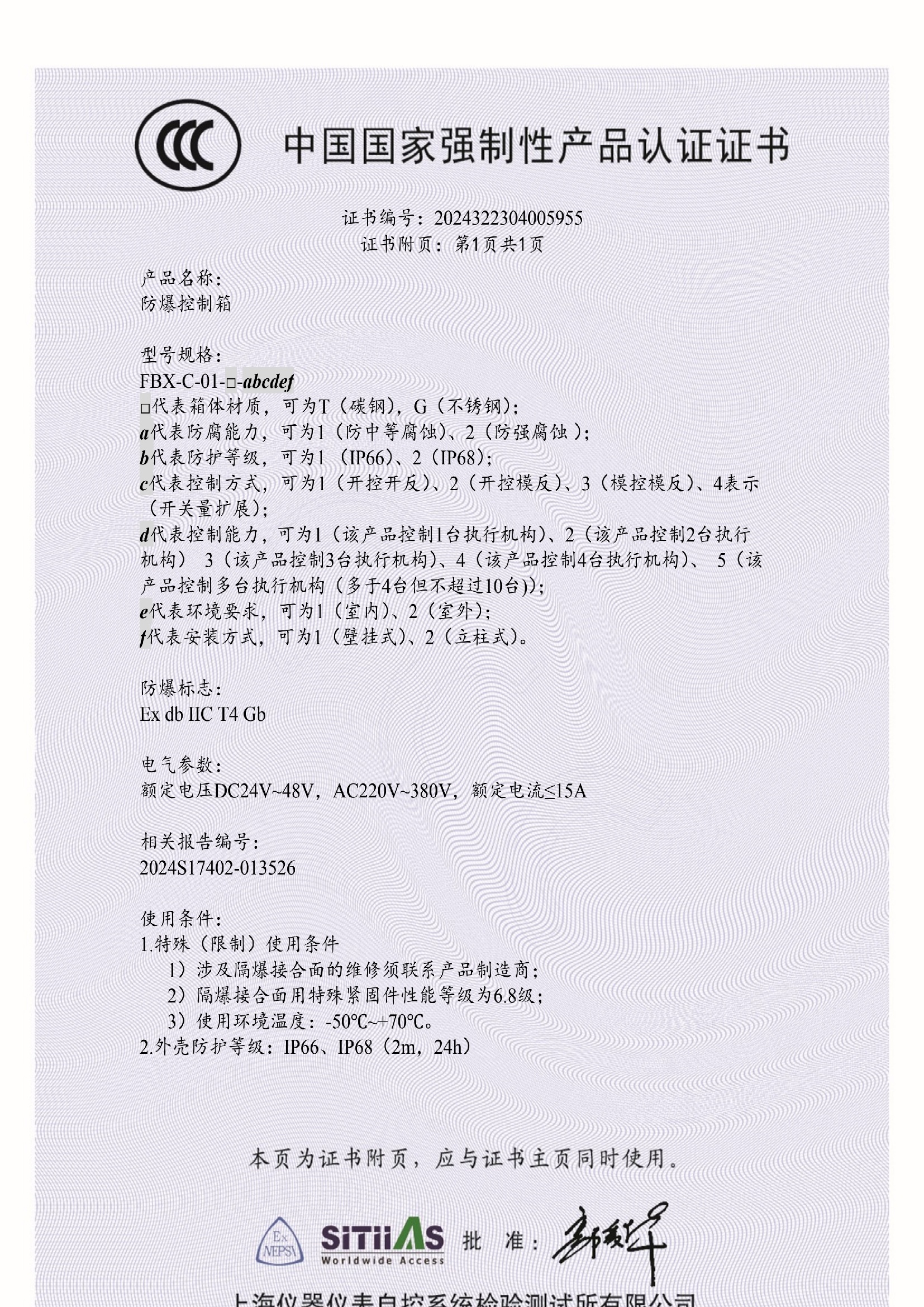 防爆控制箱 CCC证书