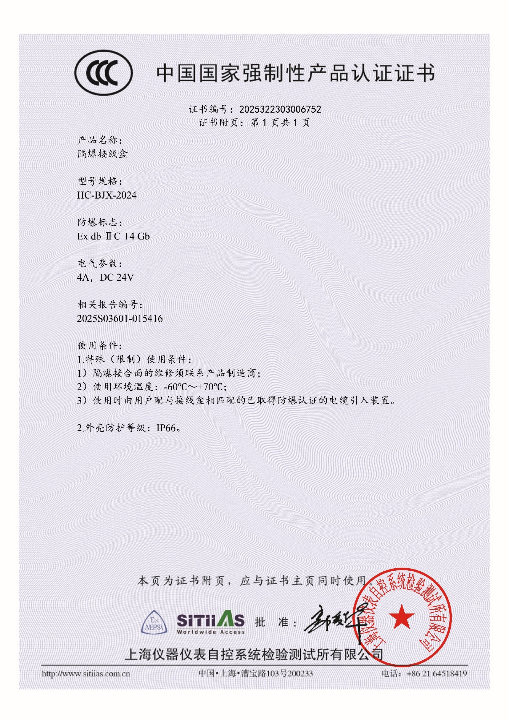 防爆接线盒CCC证书