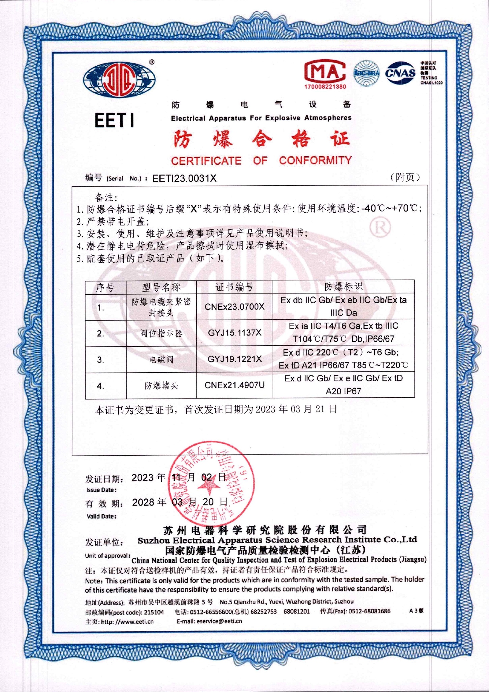 EETI23.0031X 防爆合格证