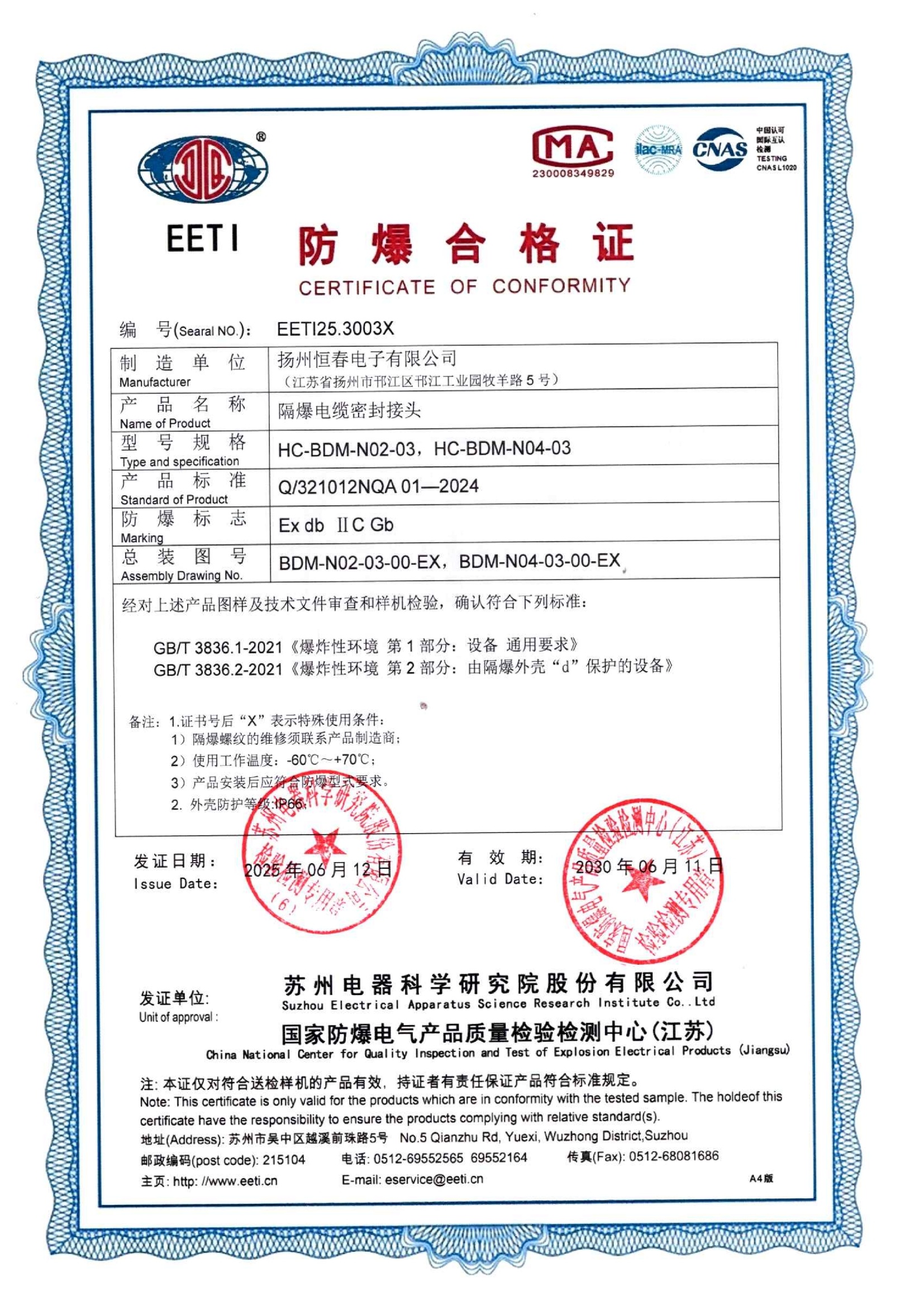 EET125.3005X 防爆合格证