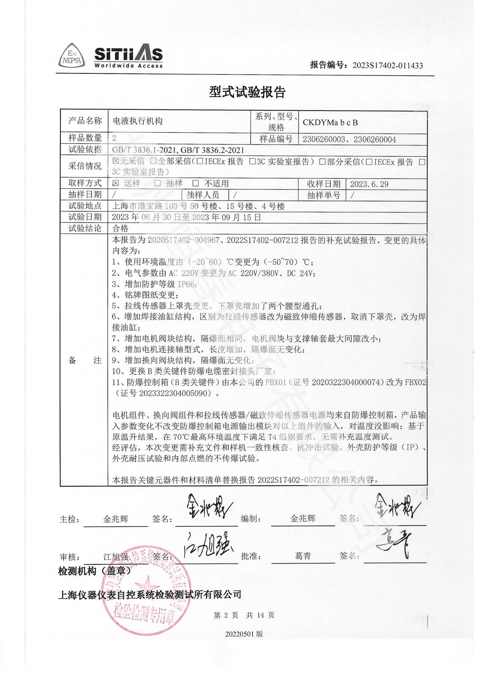 2022S17402-007212 电液执行机构型式试验报告