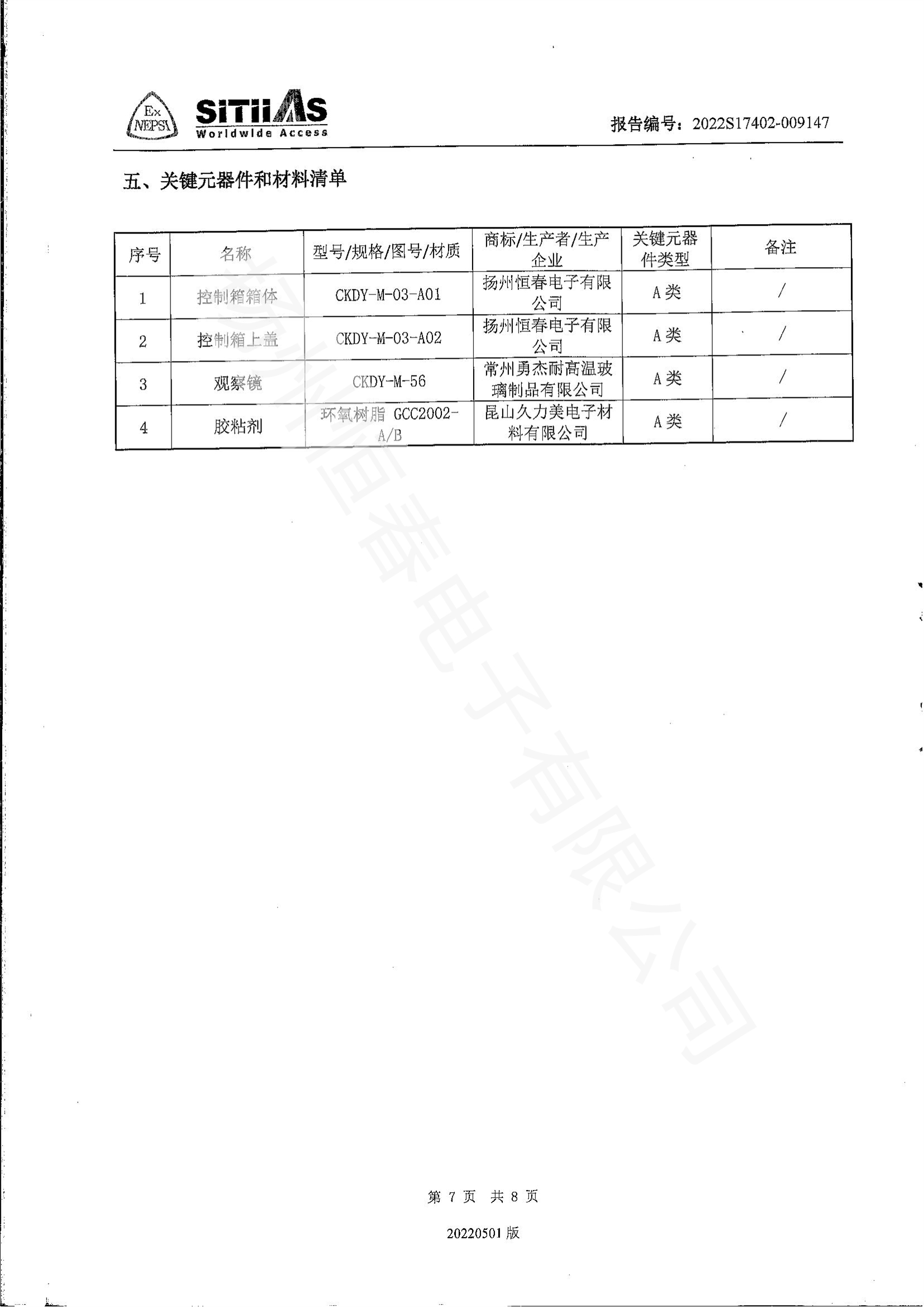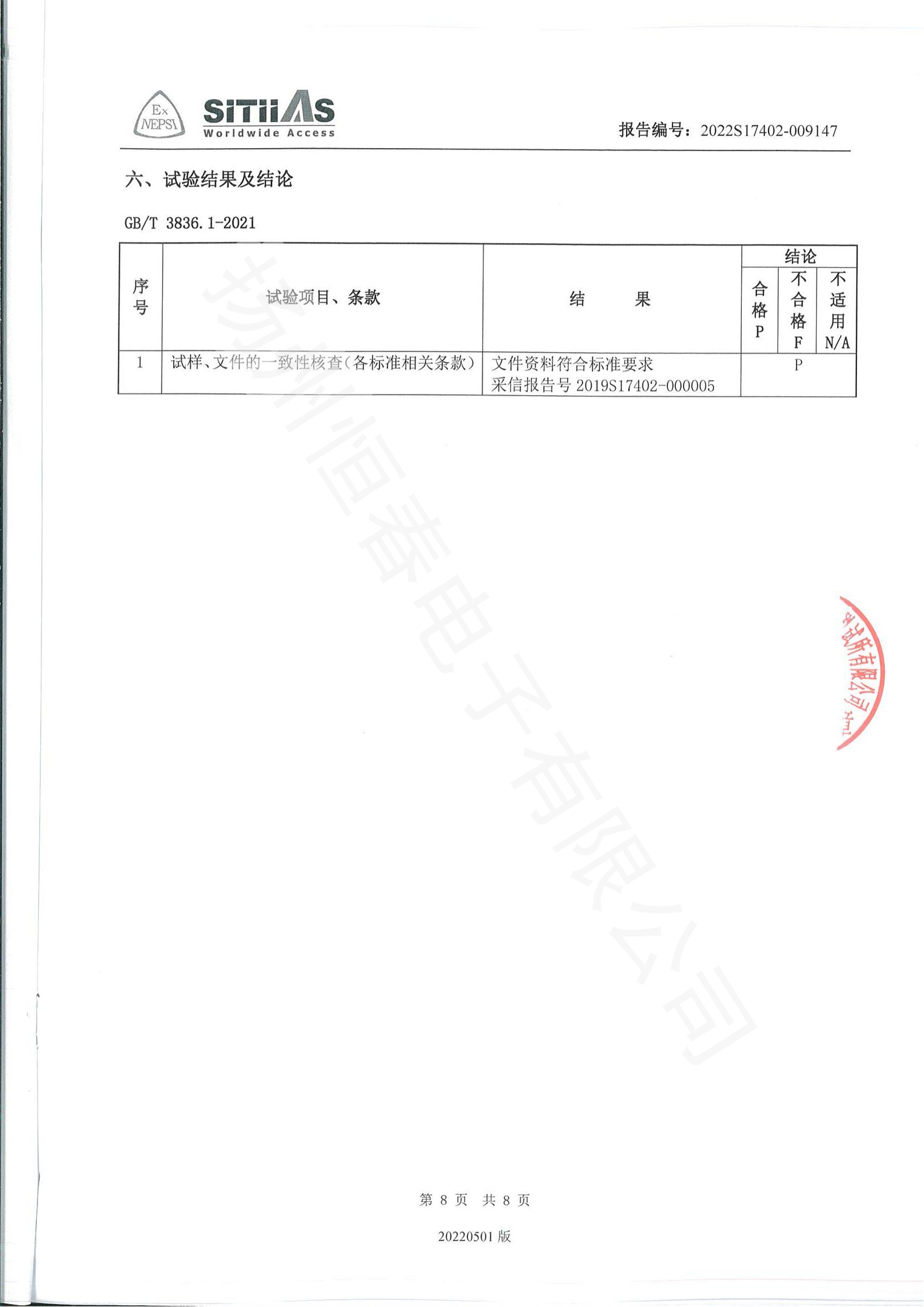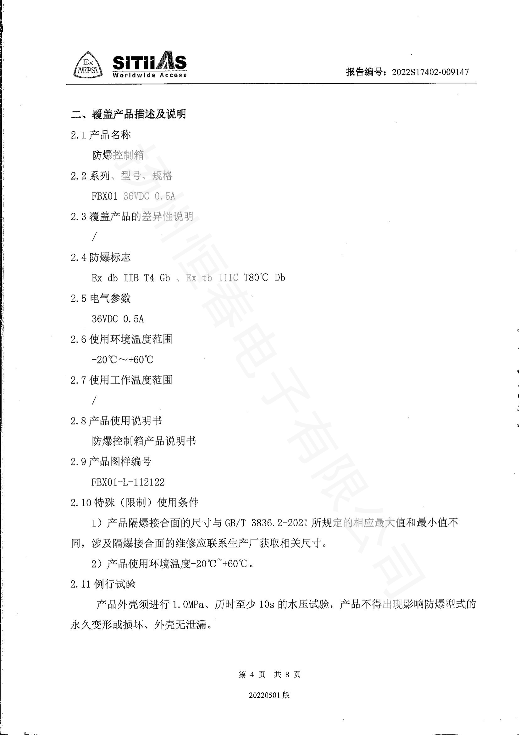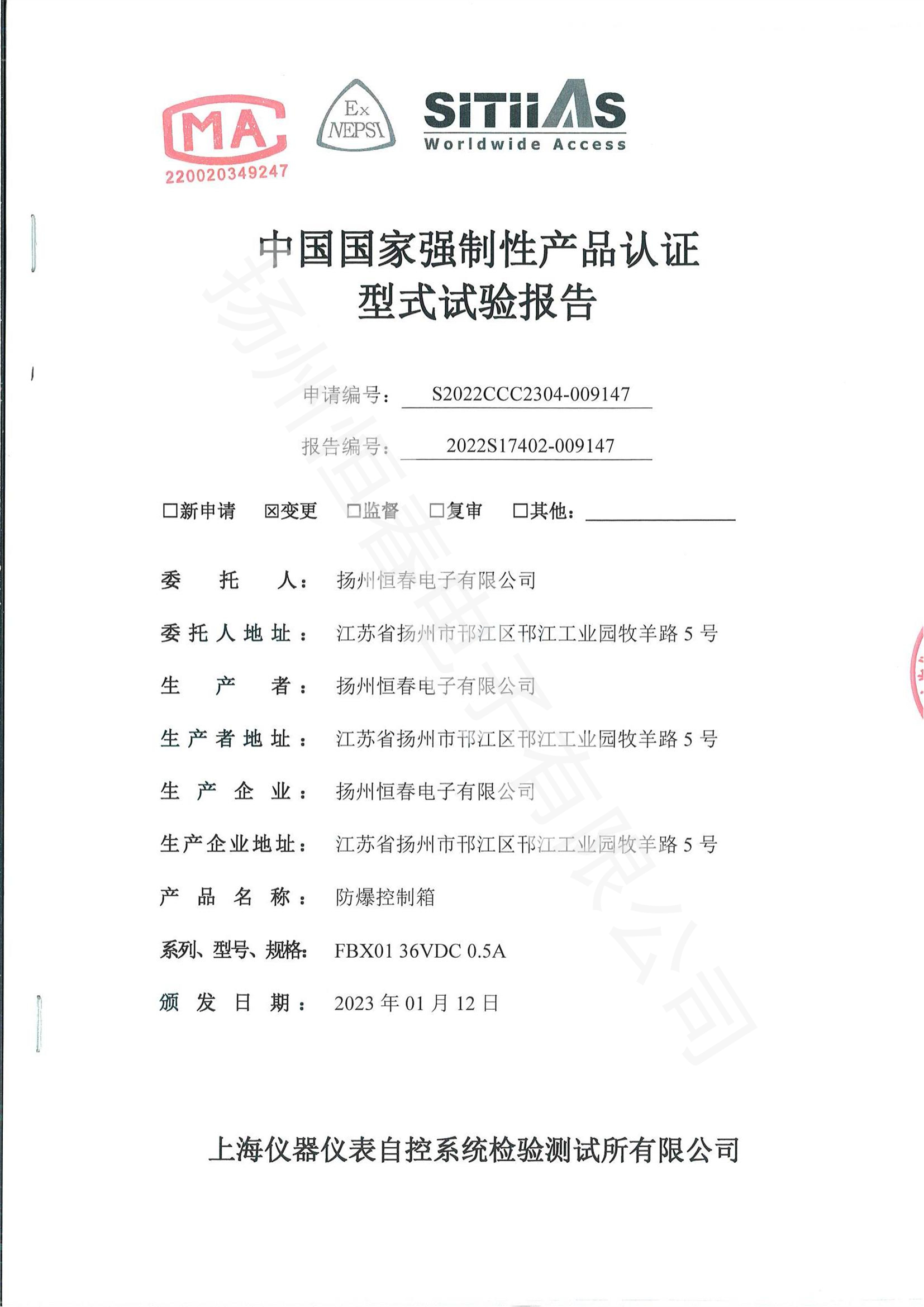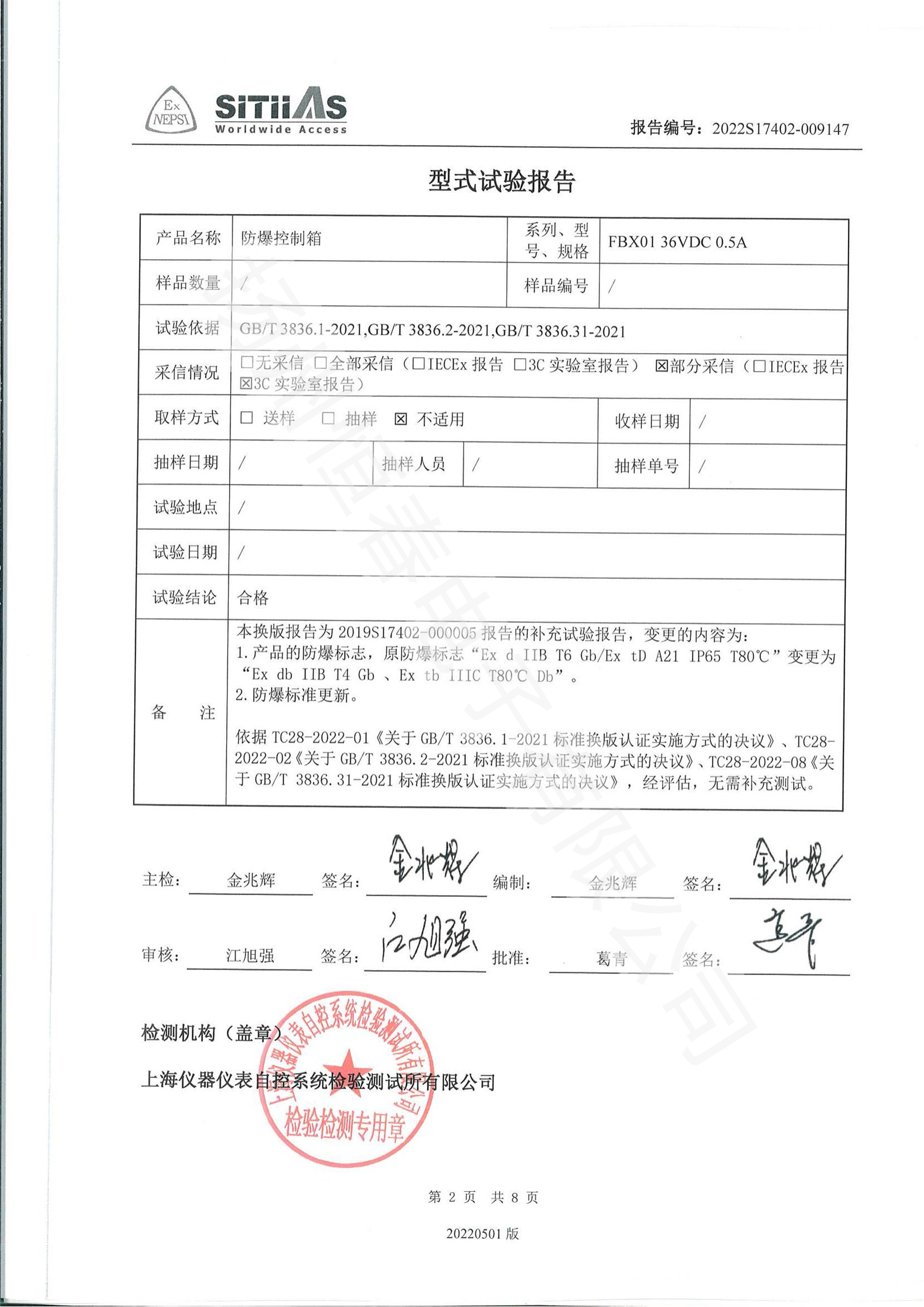 2022S17402-009147 防爆控制箱3C型式试验报告