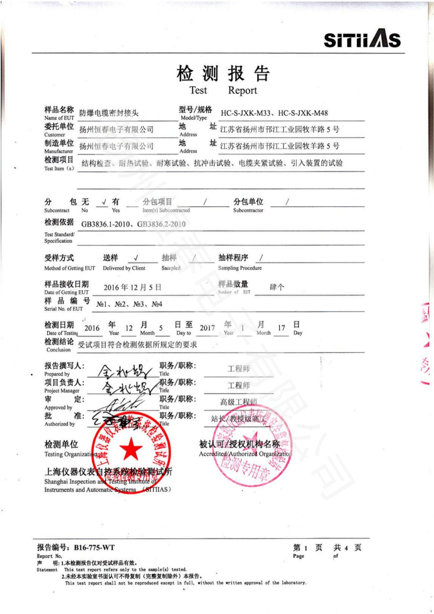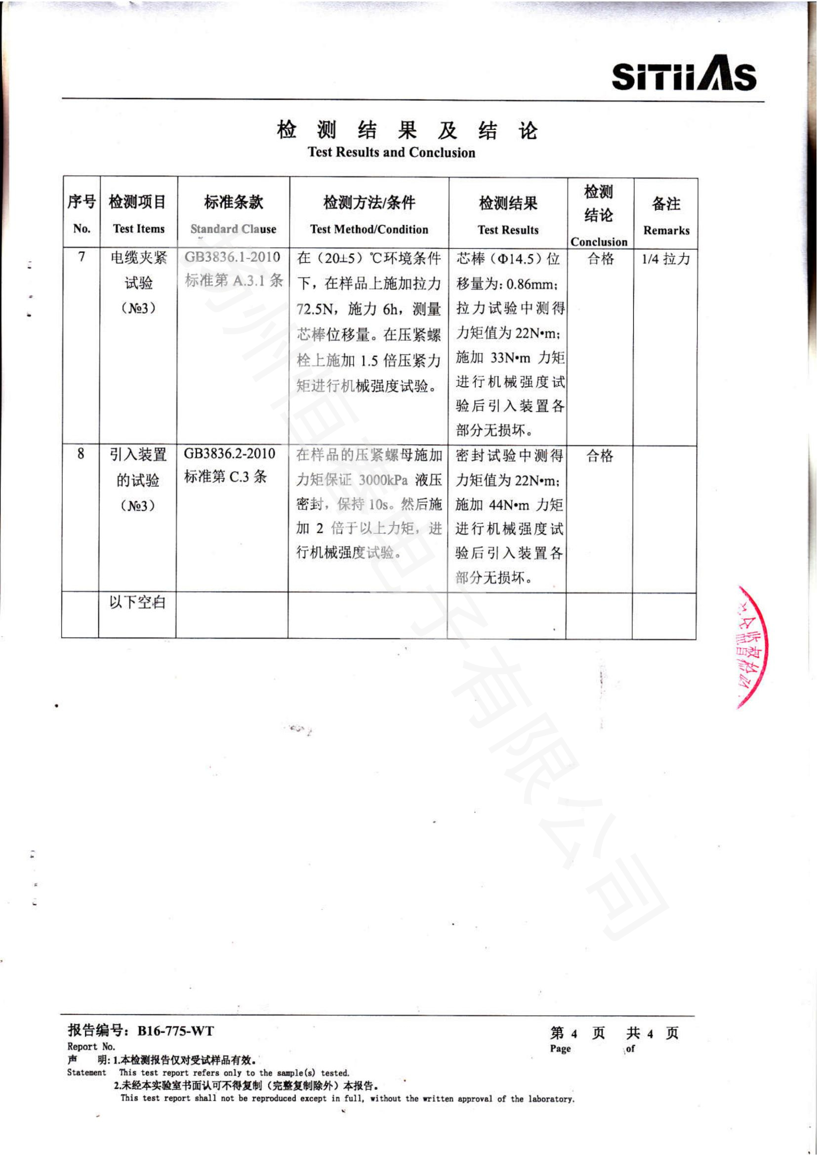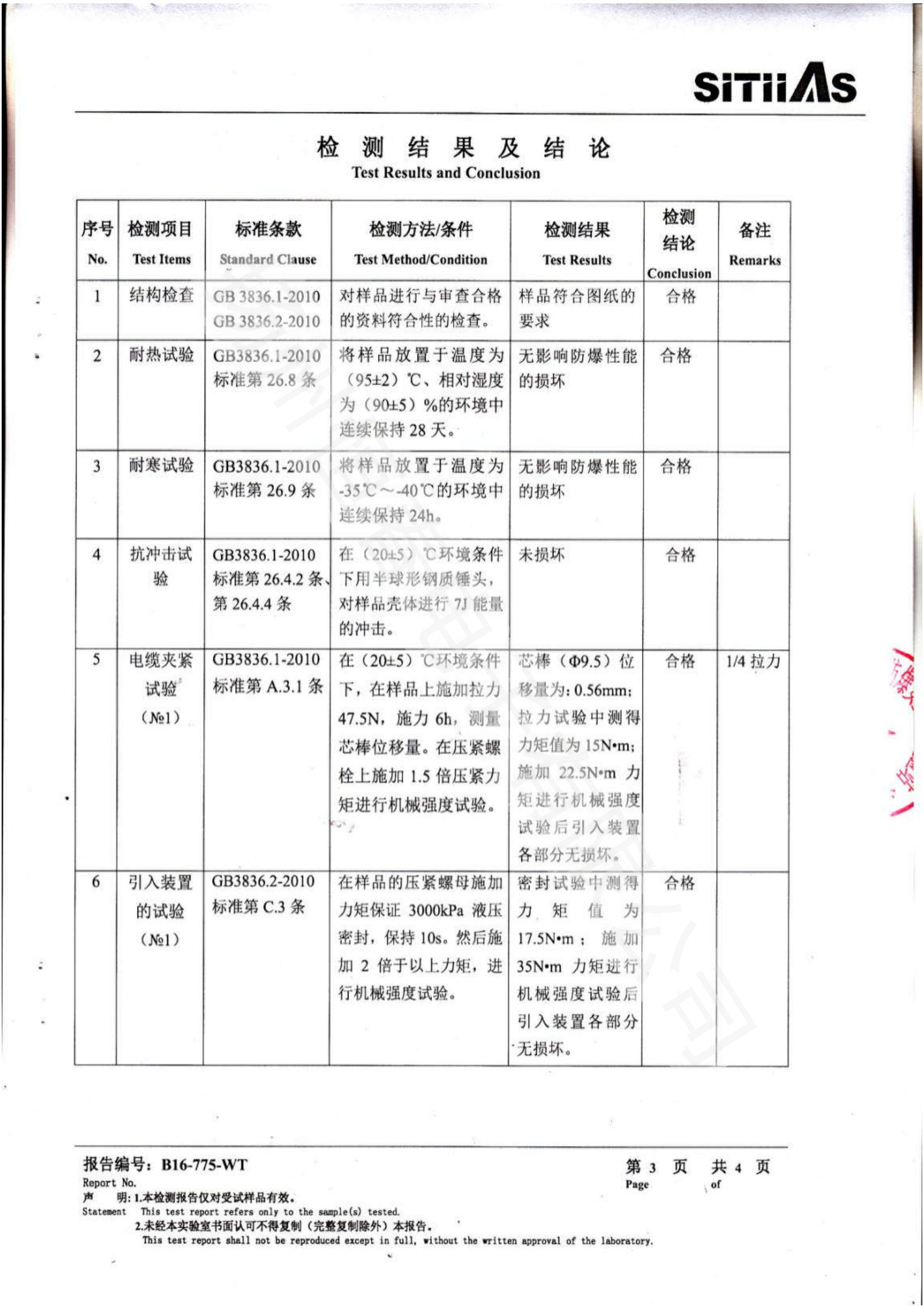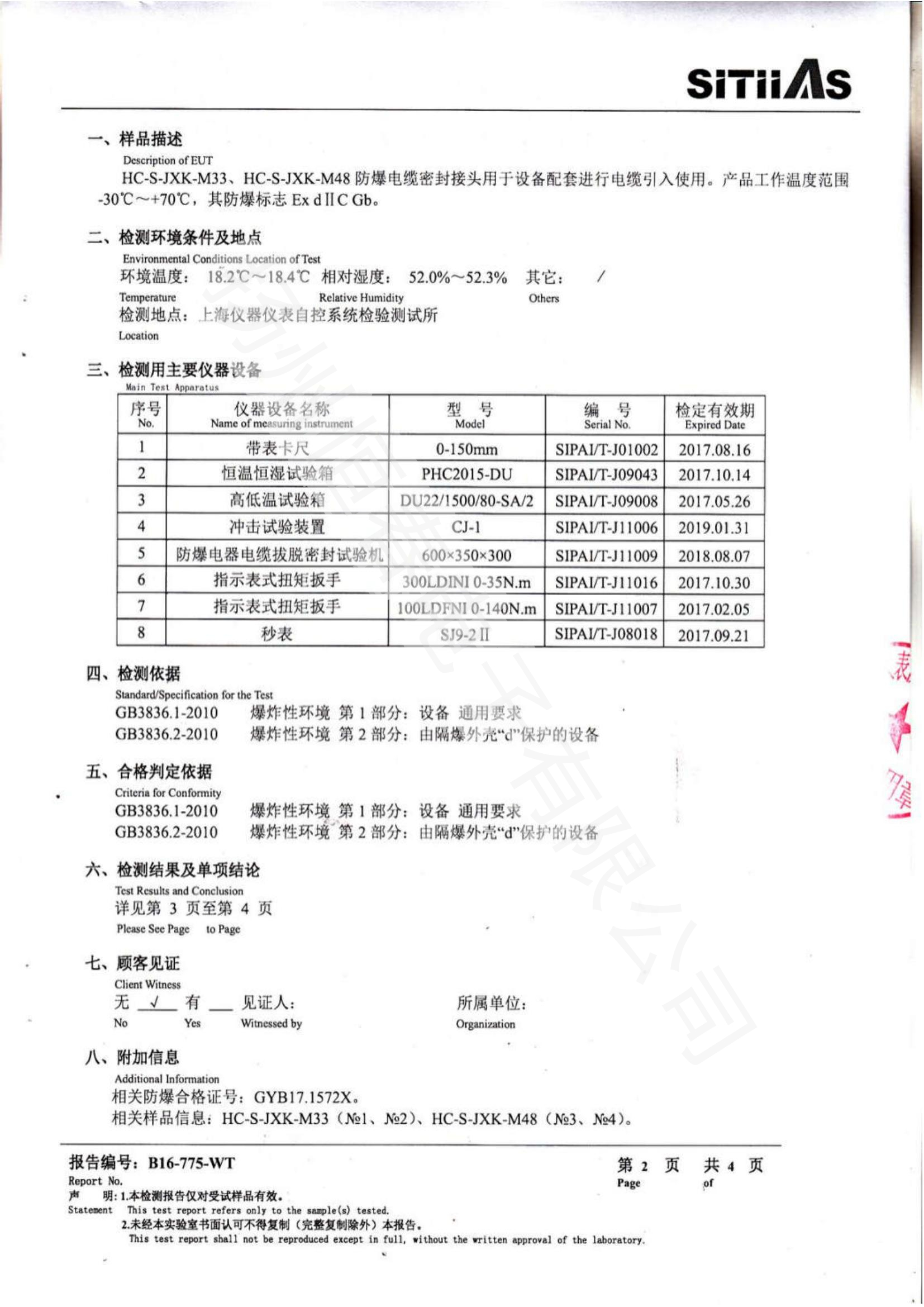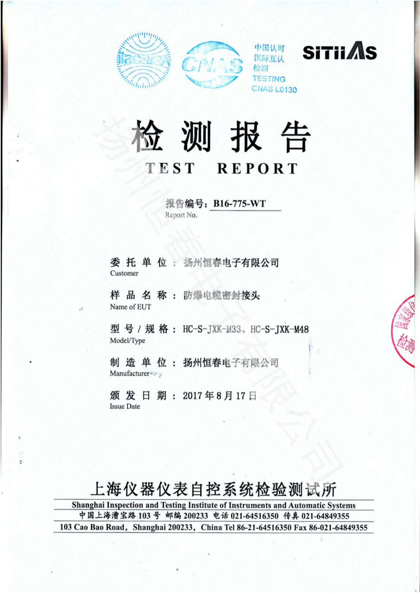 B16-775-WT 防爆电缆密封接头型式试验报告