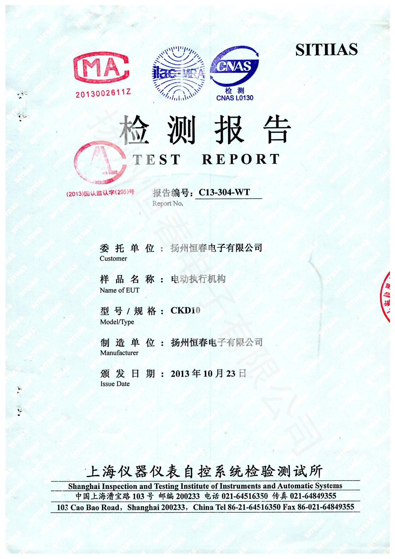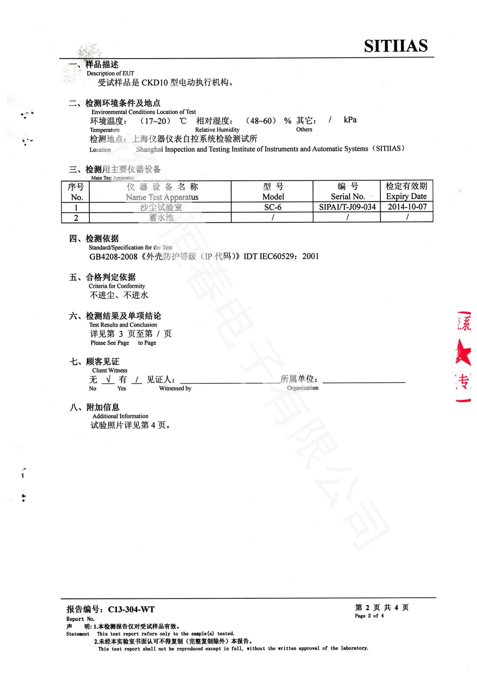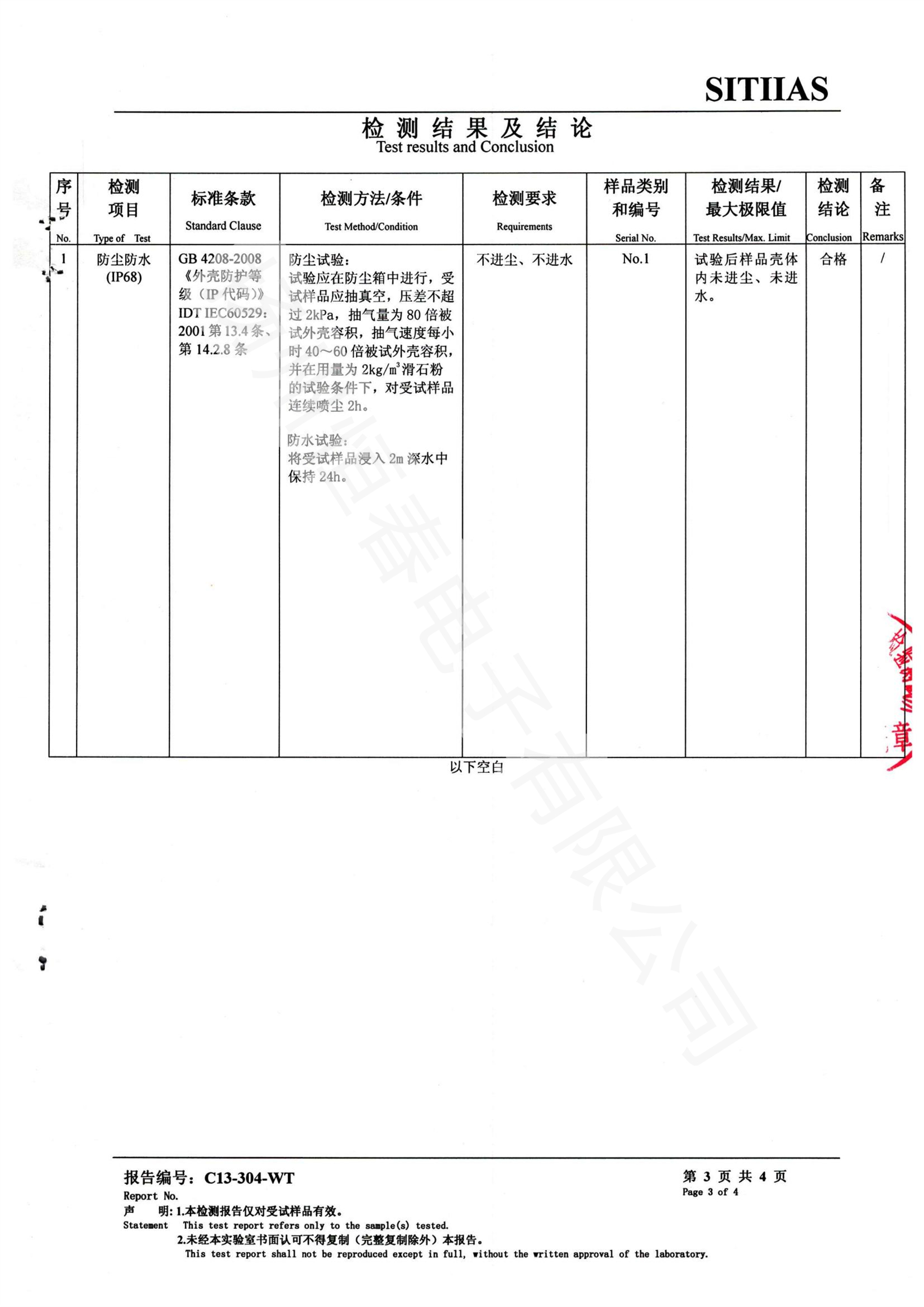 C13-304-WT 检测报告-CKD10 -防尘防水(IP68)