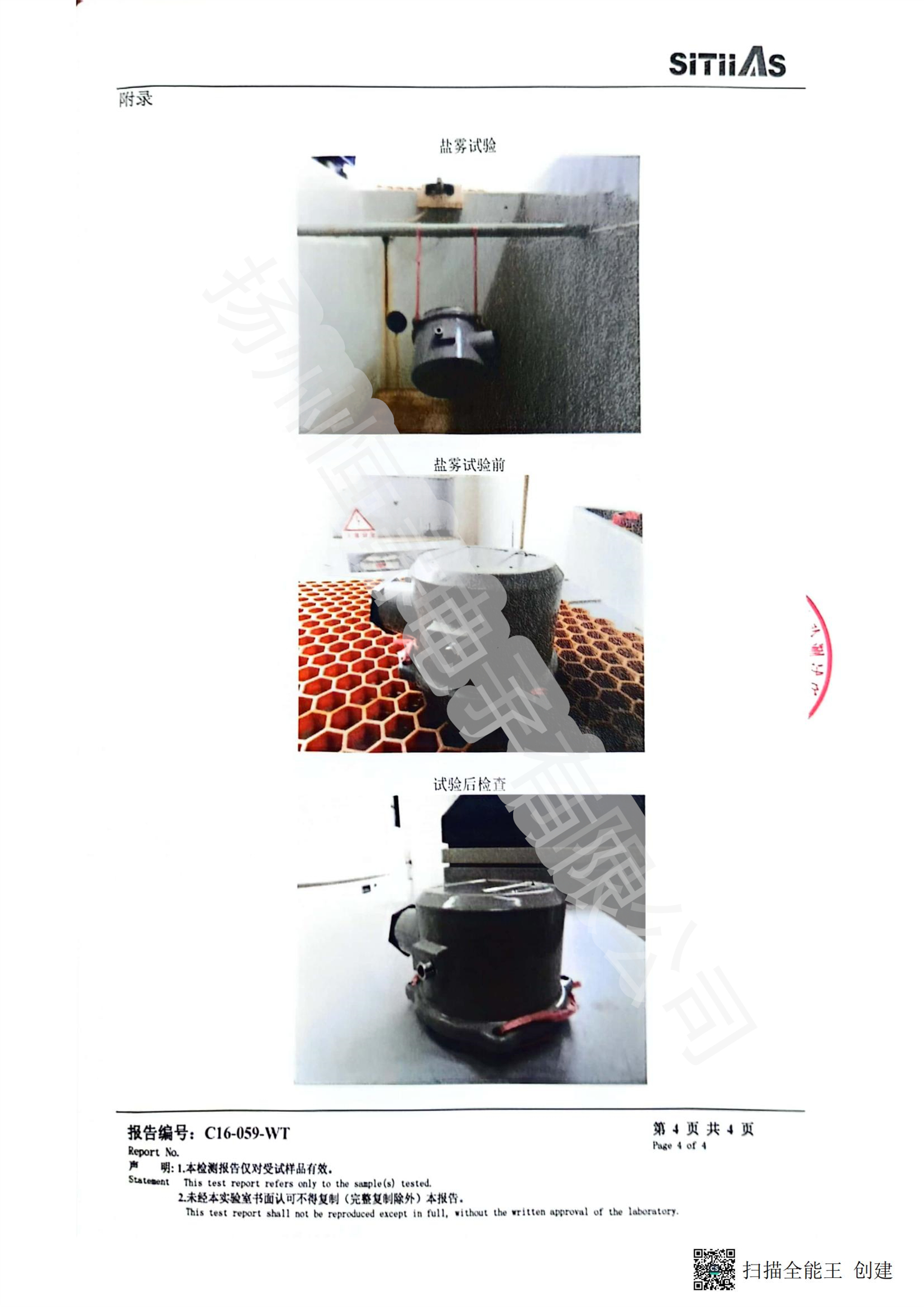 C16-059-WT 铝件喷塑盐雾试验