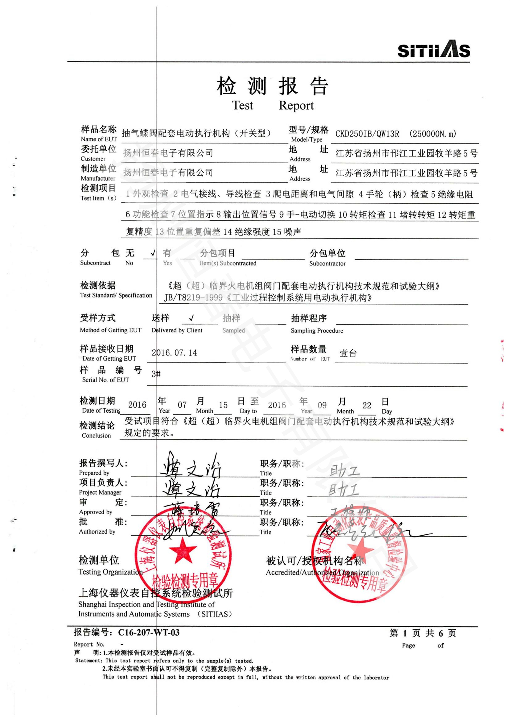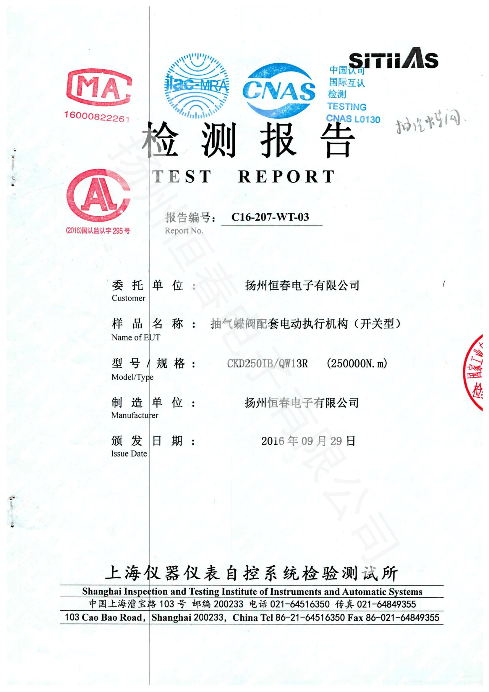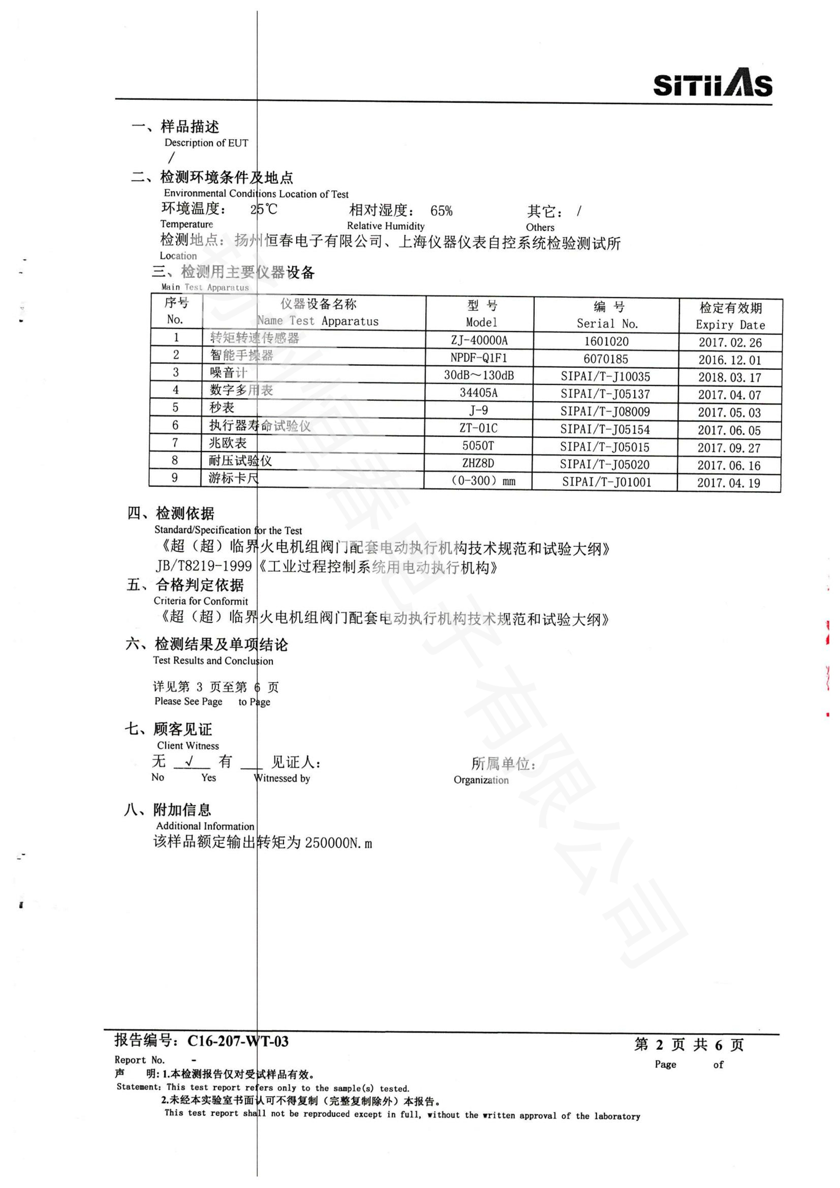 C16-207-WT-03 CKD250IB-QW13R(250000Nm)型式试验