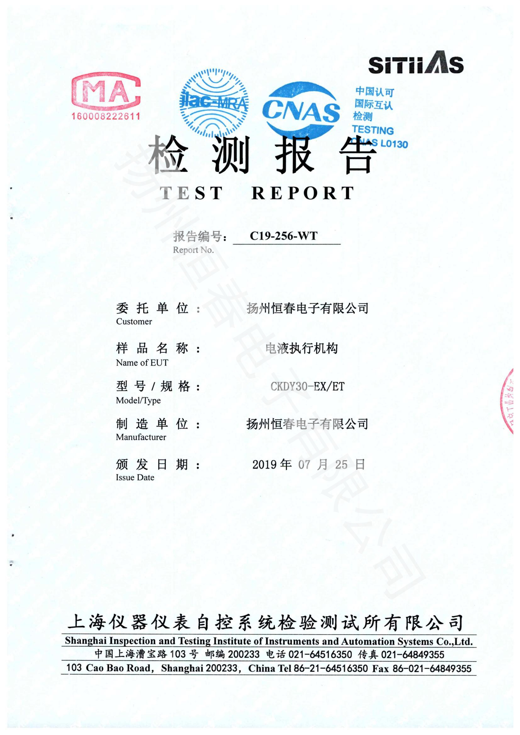 C20-236-WT-01电液CKDY执行机构(基本误差)