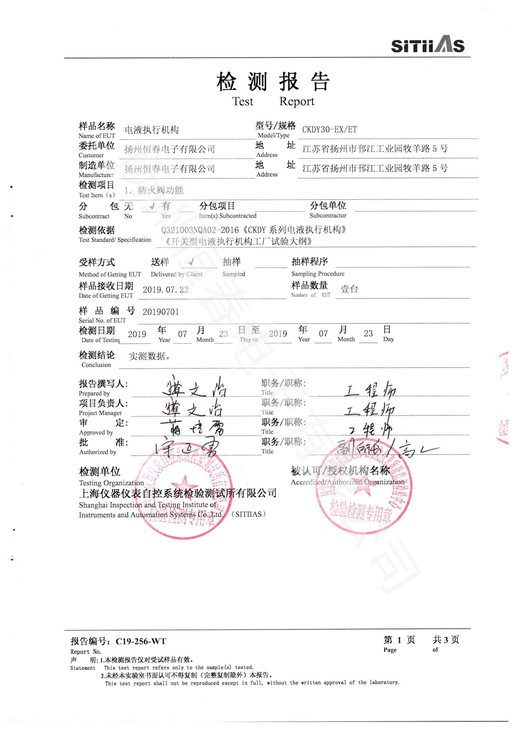 C19-256-WT 电液执行机构-CKDY30-EXET防火阀