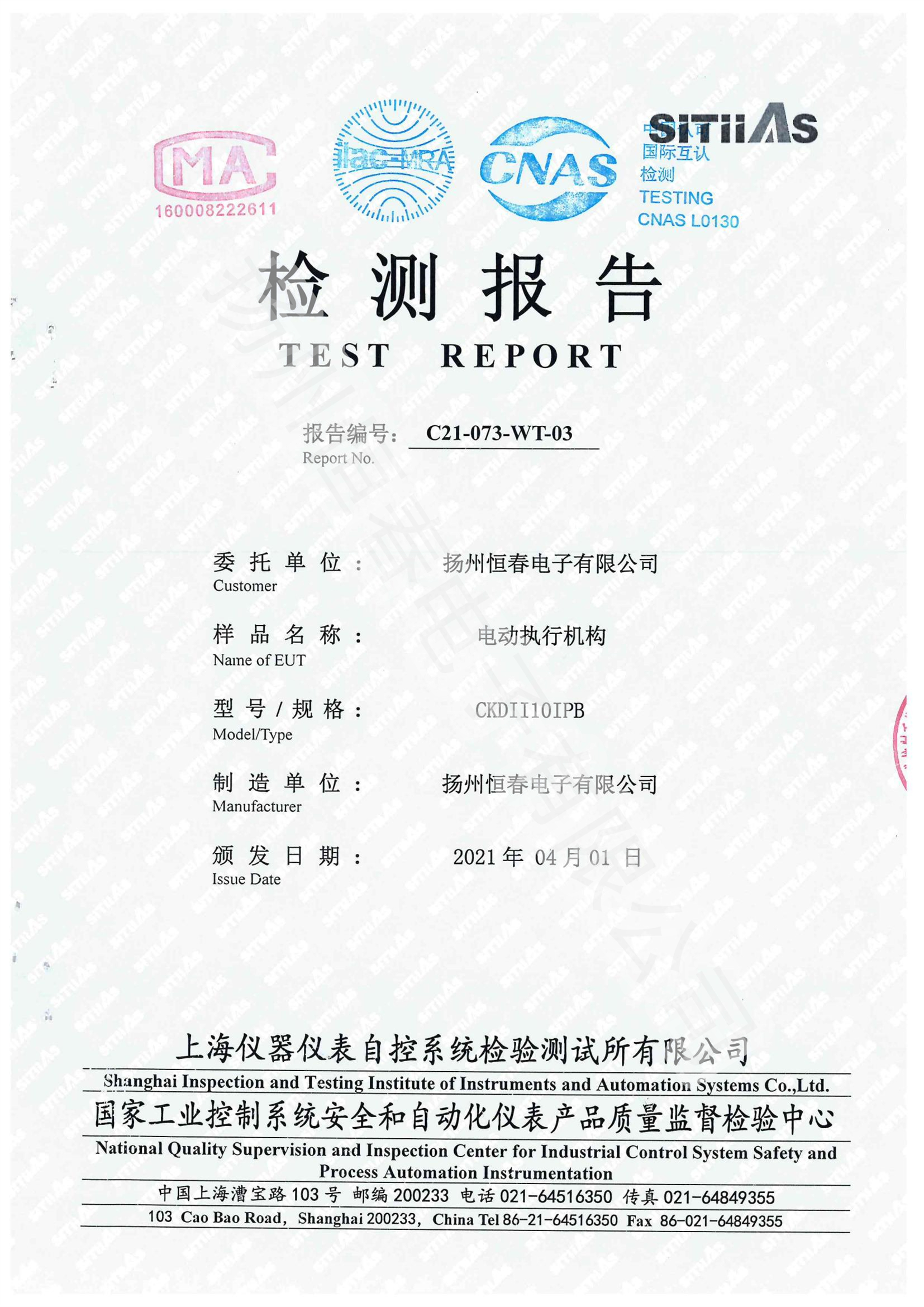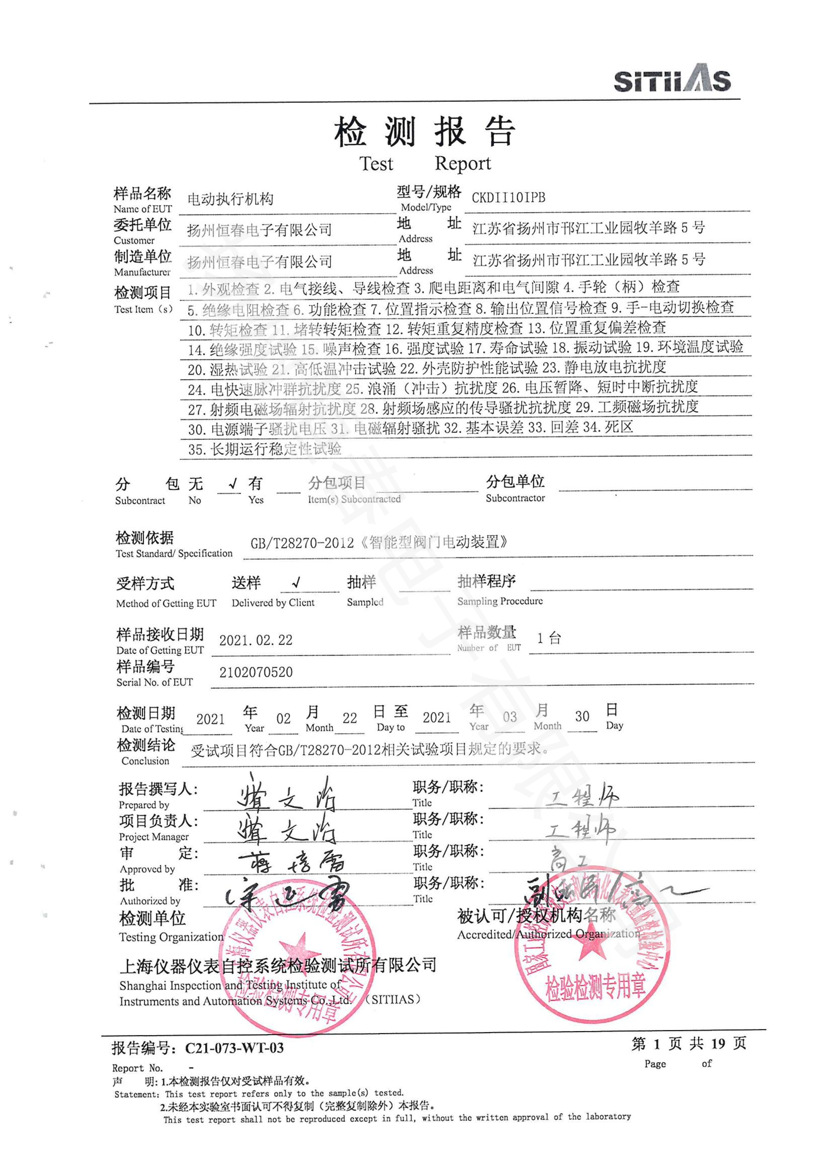 C21-073-WT-03 CKDII10 型式试验报告