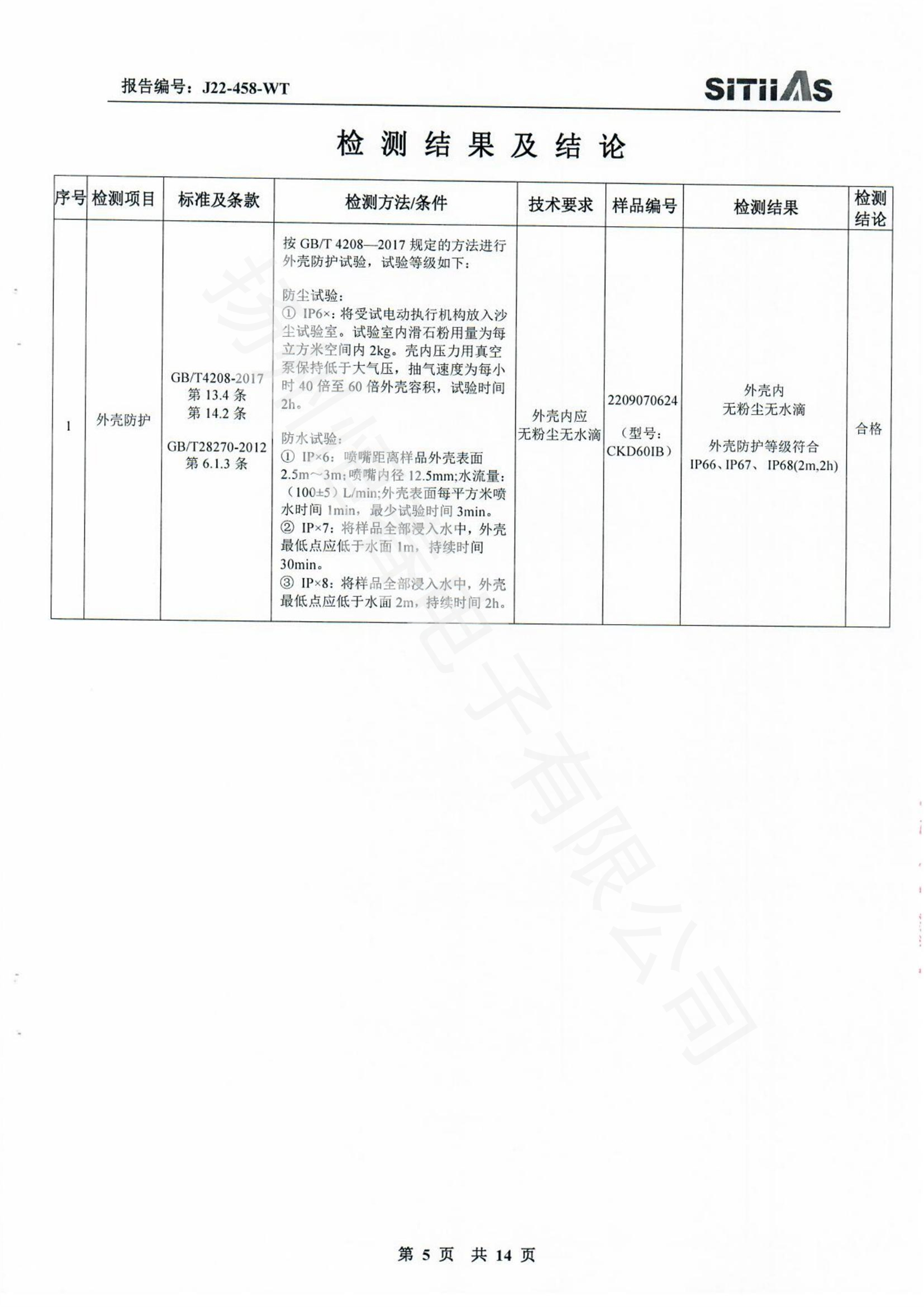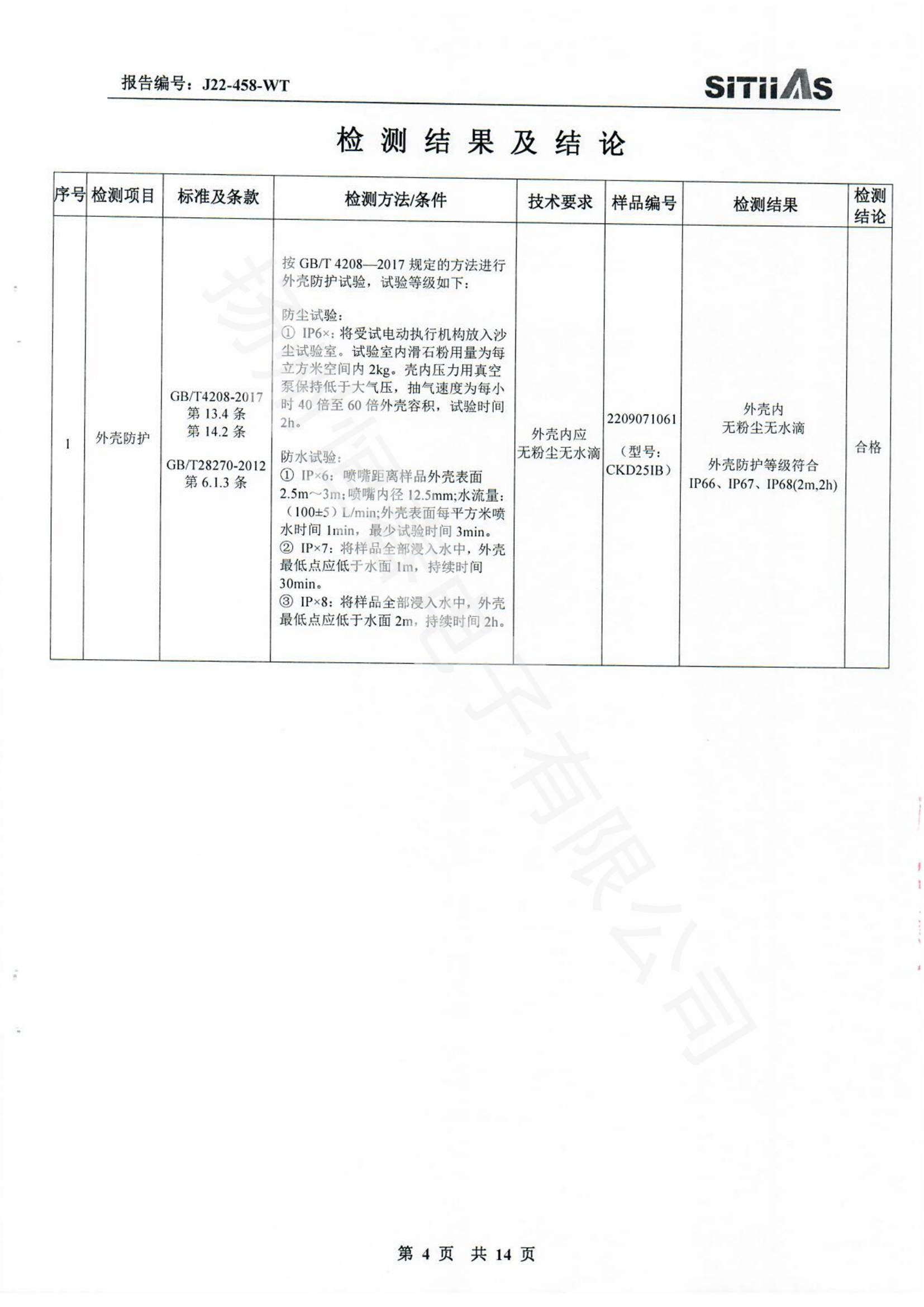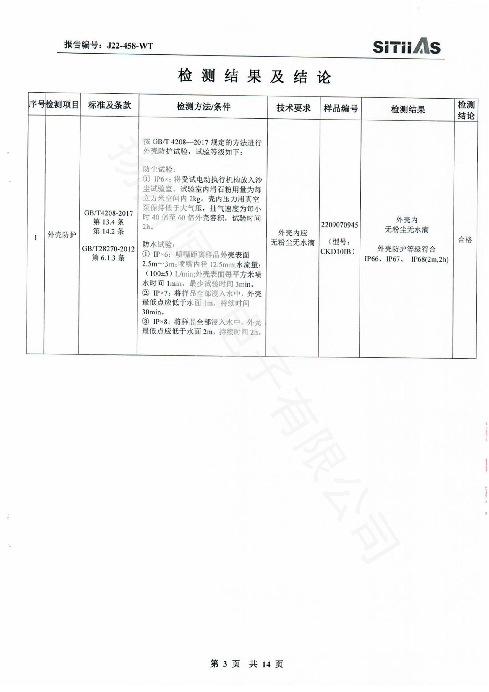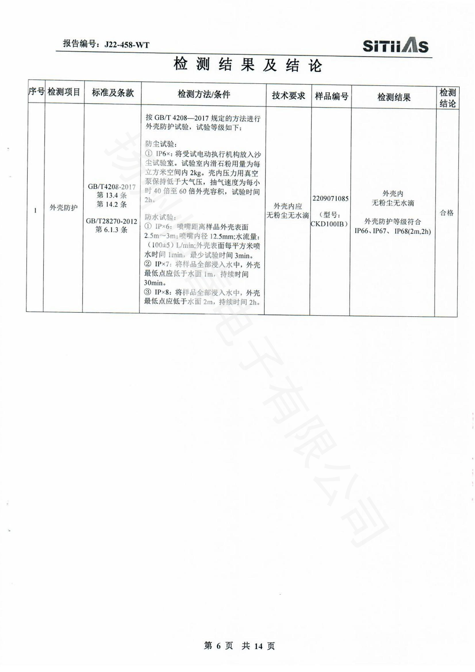 J22-318-WT 春IP66-CKDJII100测试报告