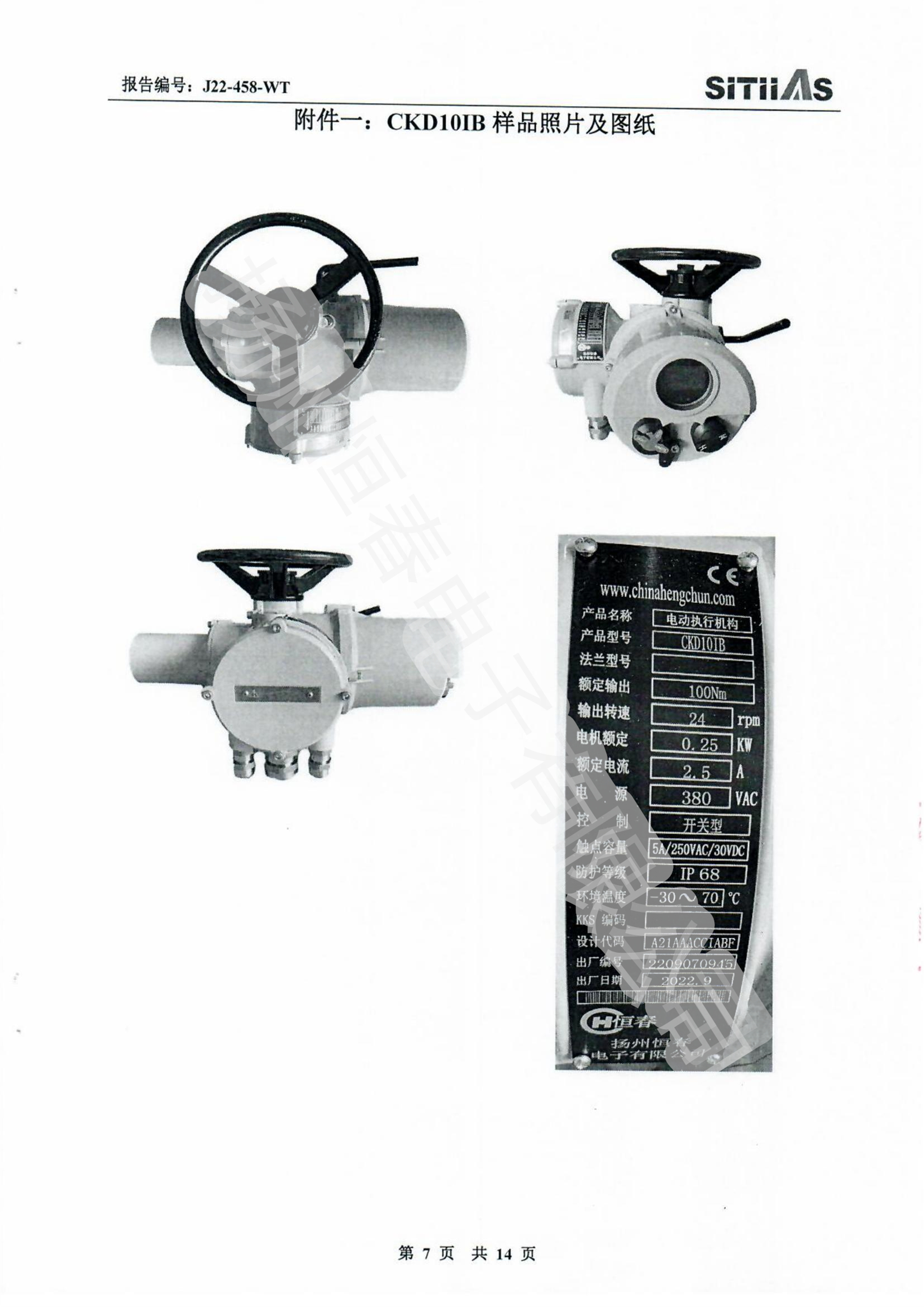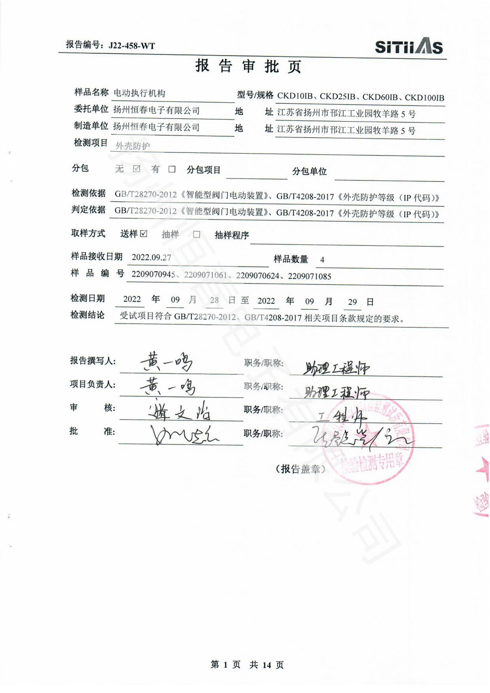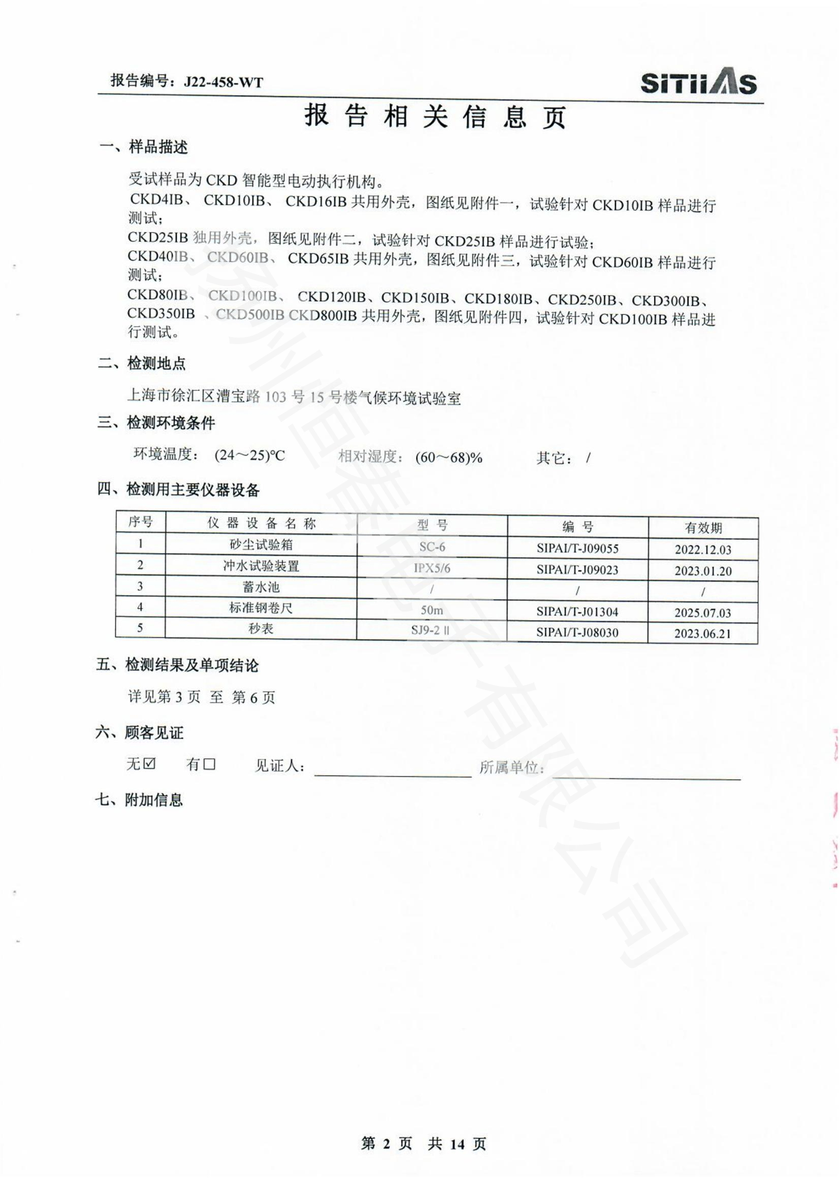 J22-318-WT 春IP66-CKDJII100测试报告