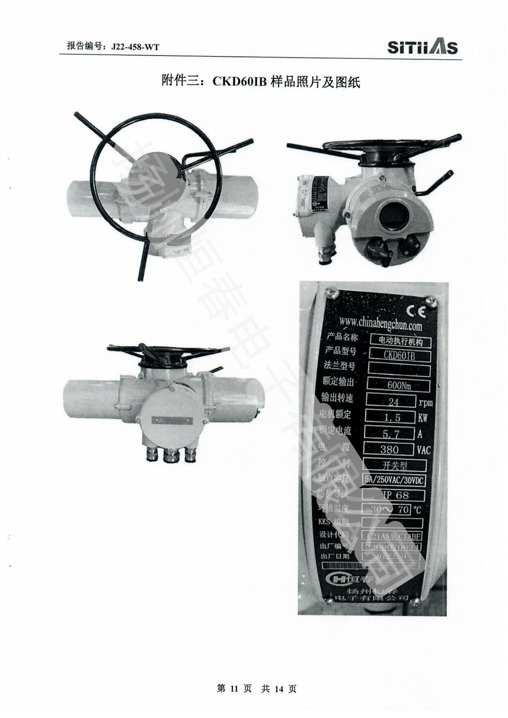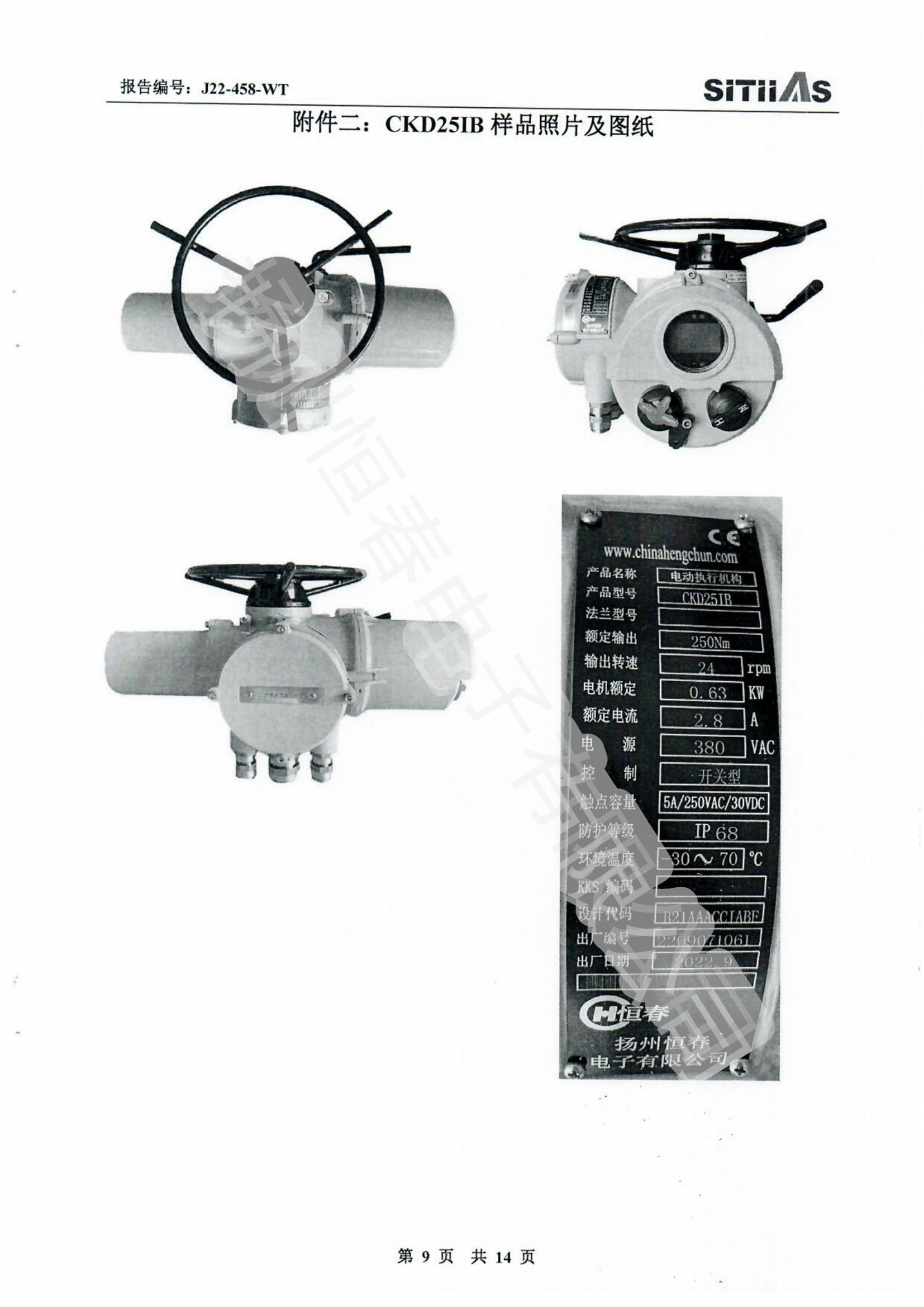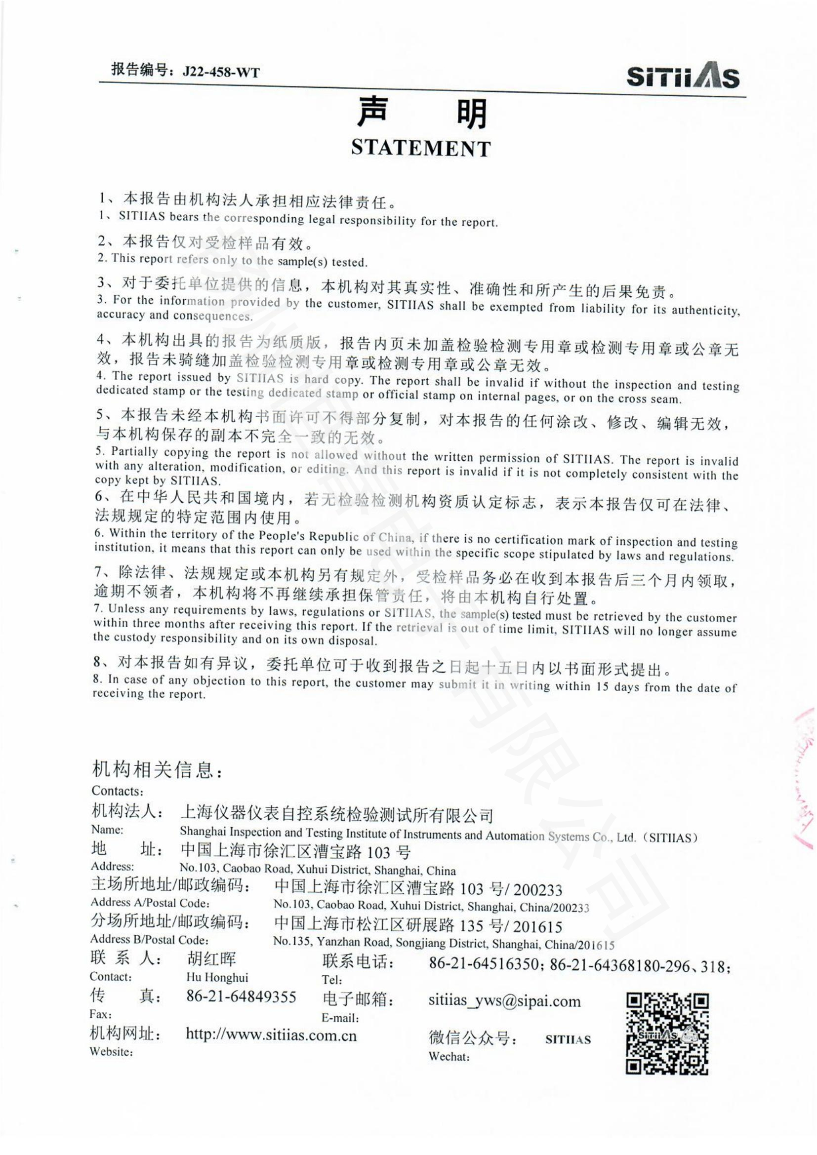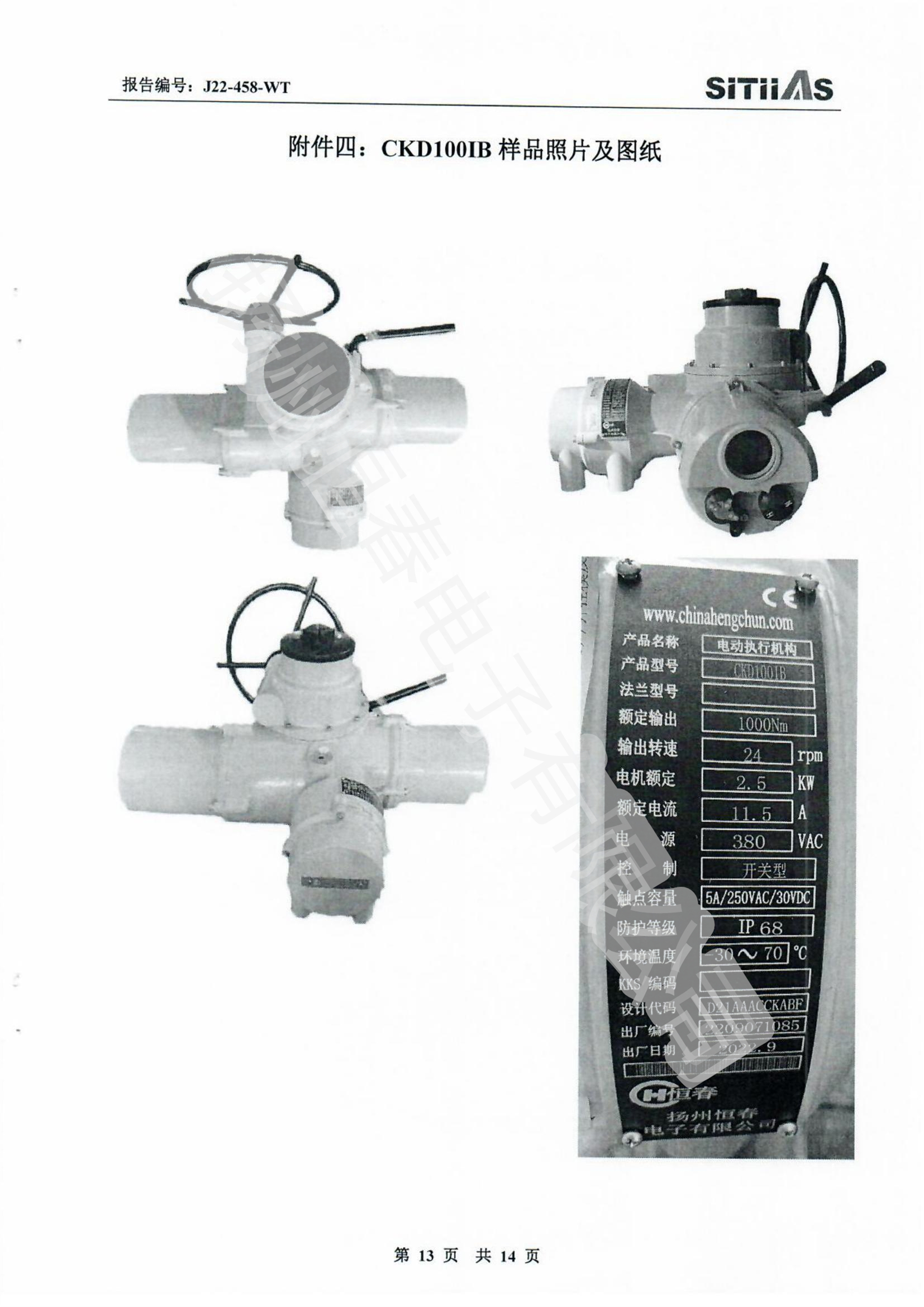 J22-318-WT 春IP66-CKDJII100测试报告