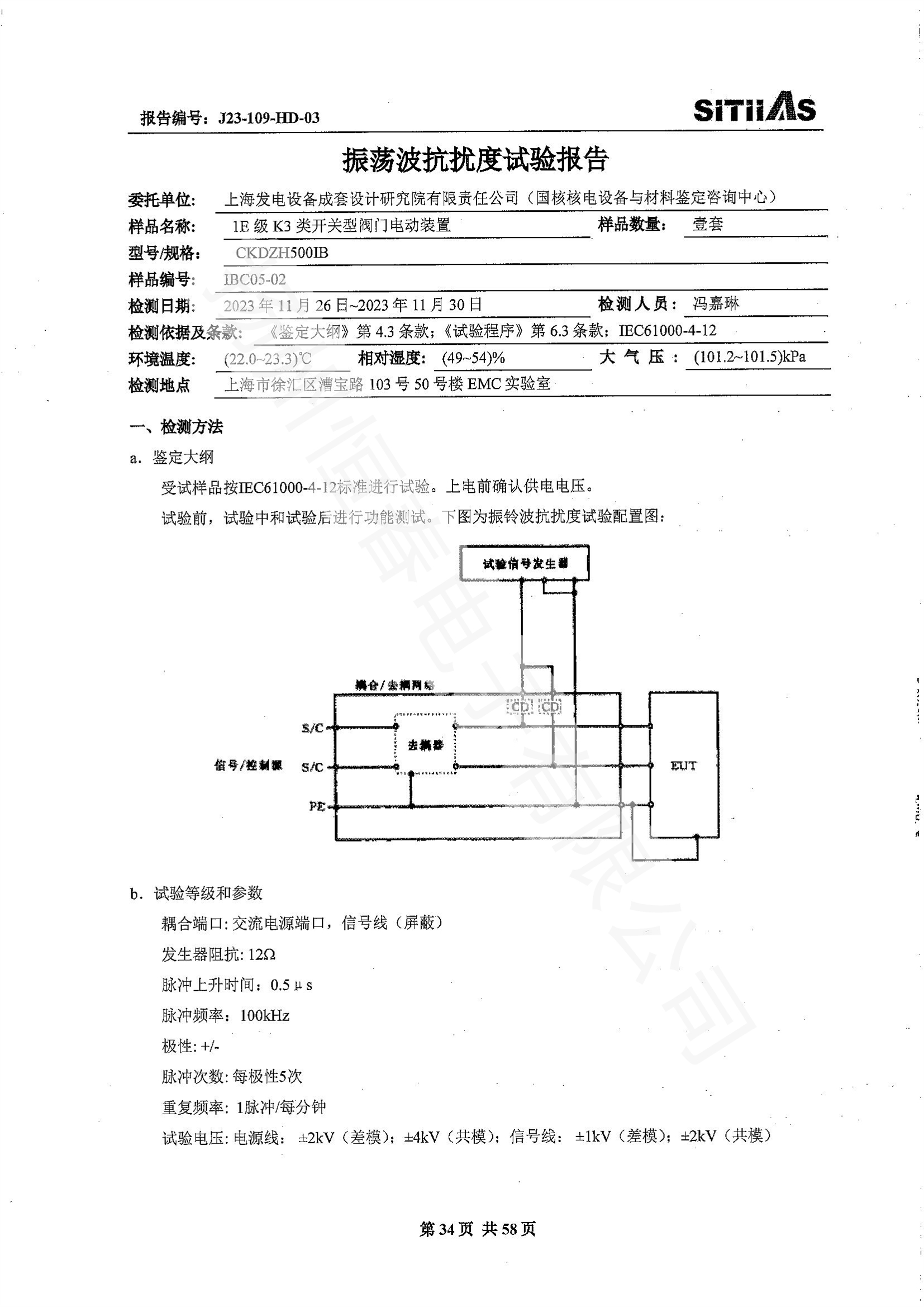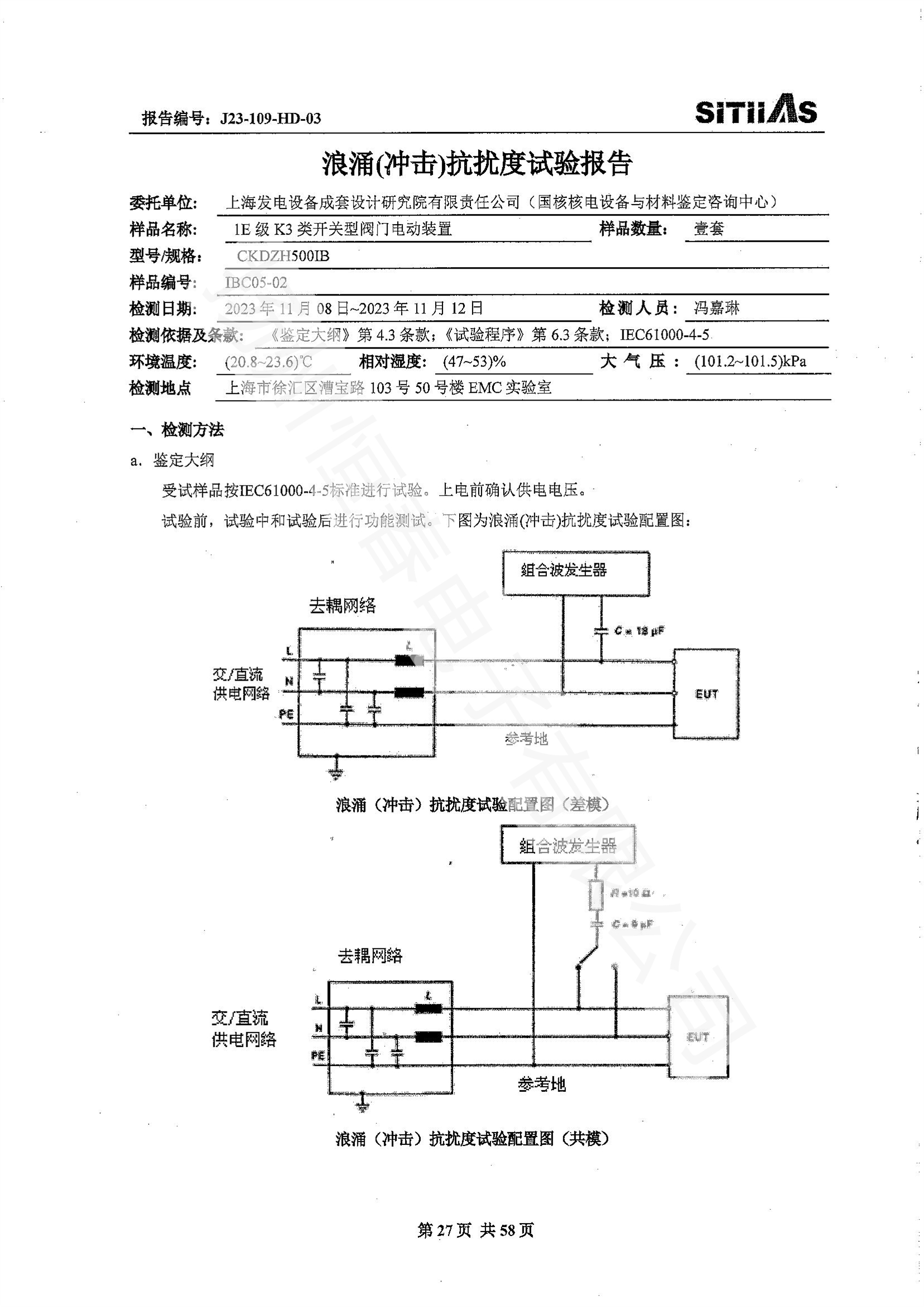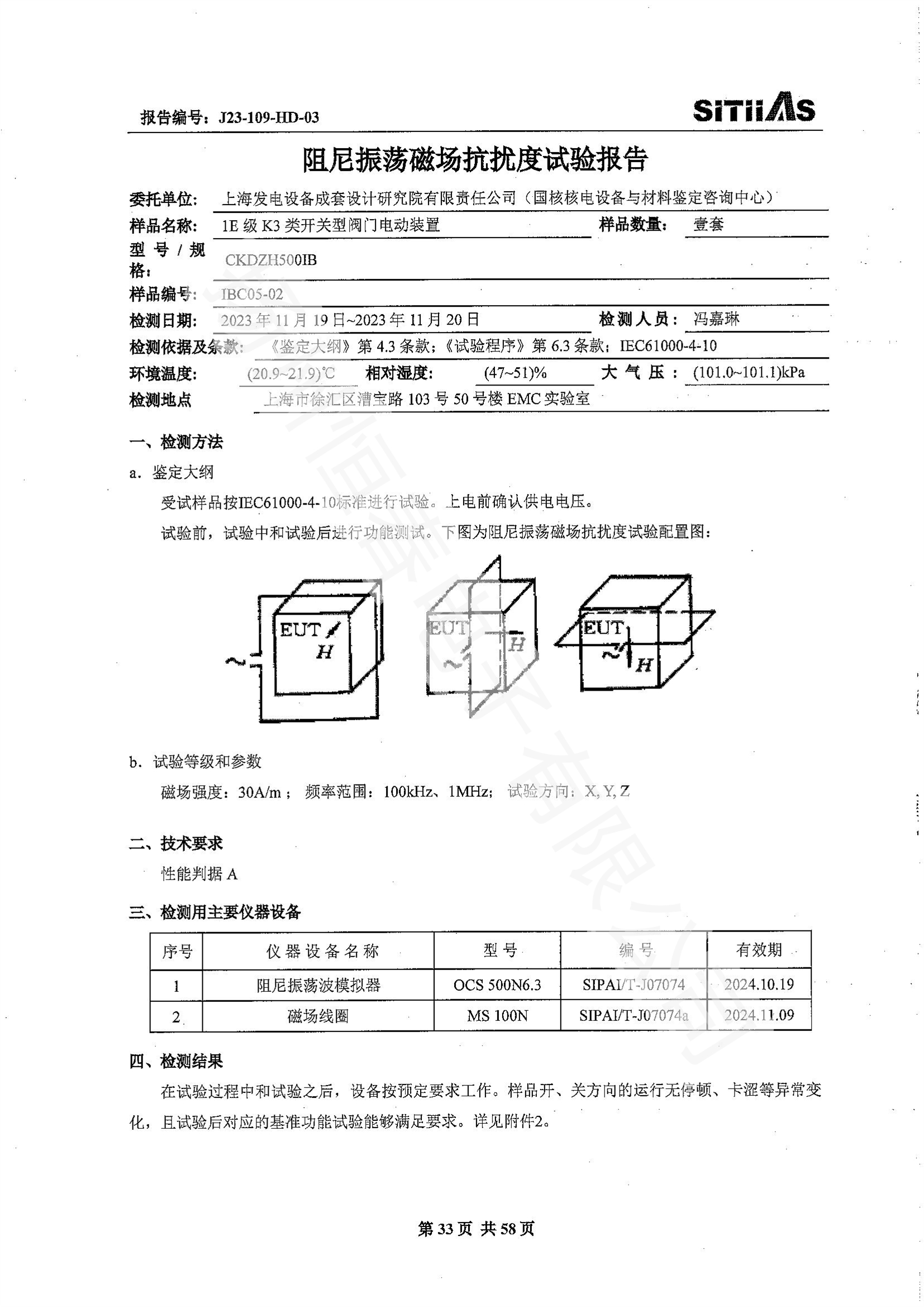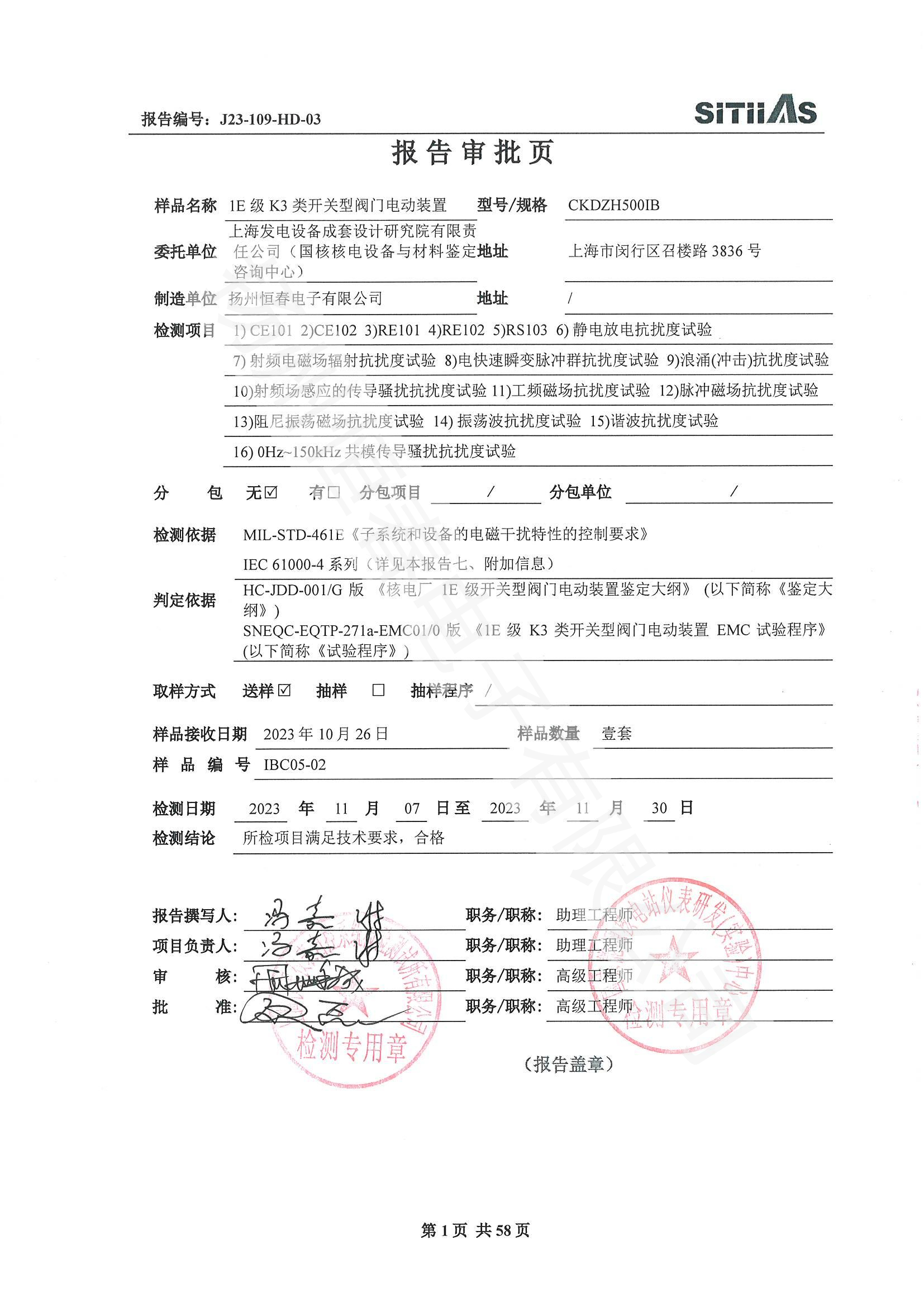 J23-109-HD-02 1E级K3类调节型阀门电动装置EMC试验报告