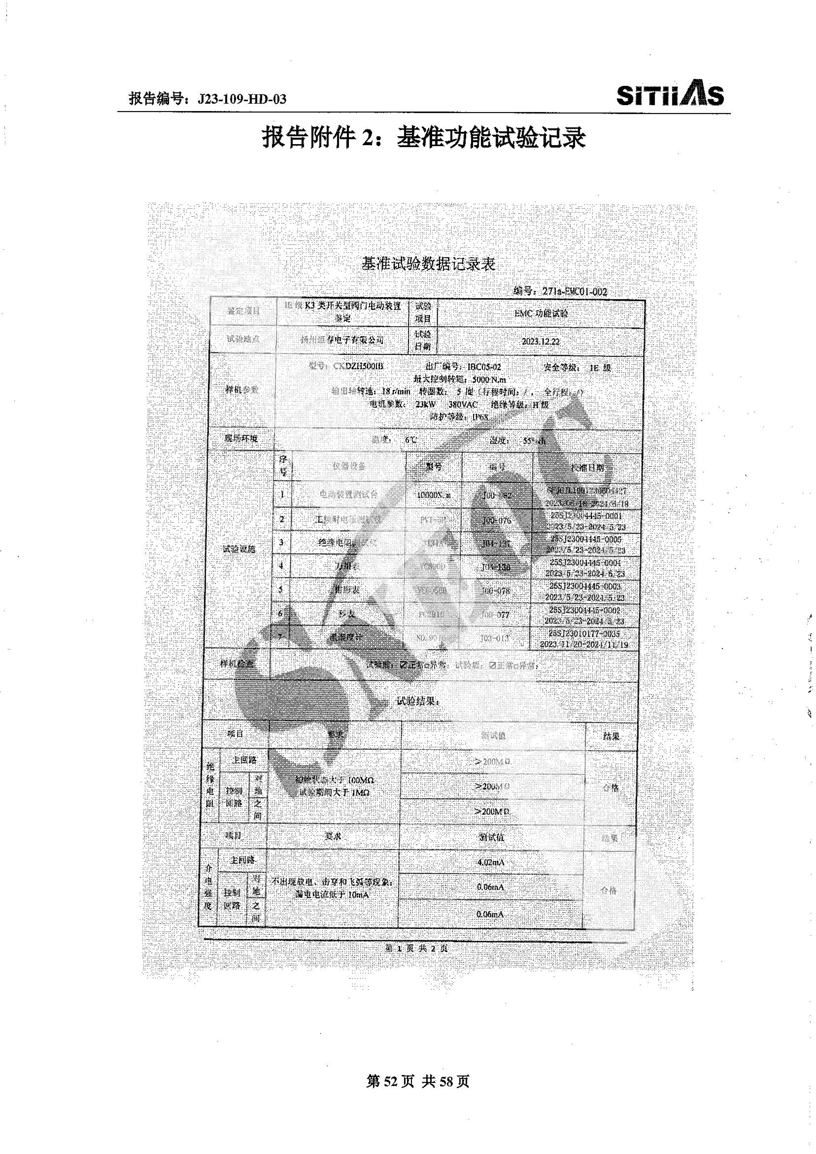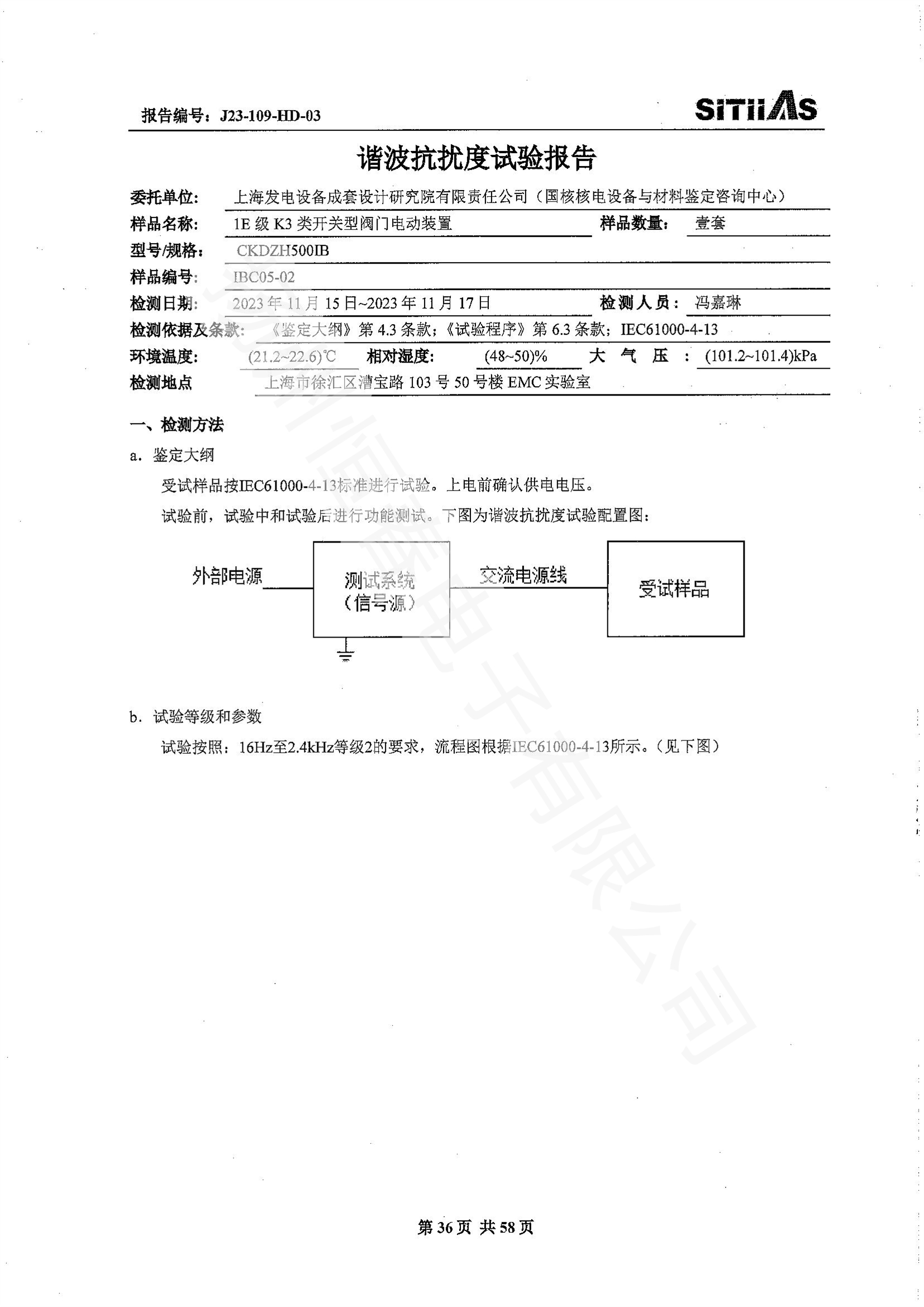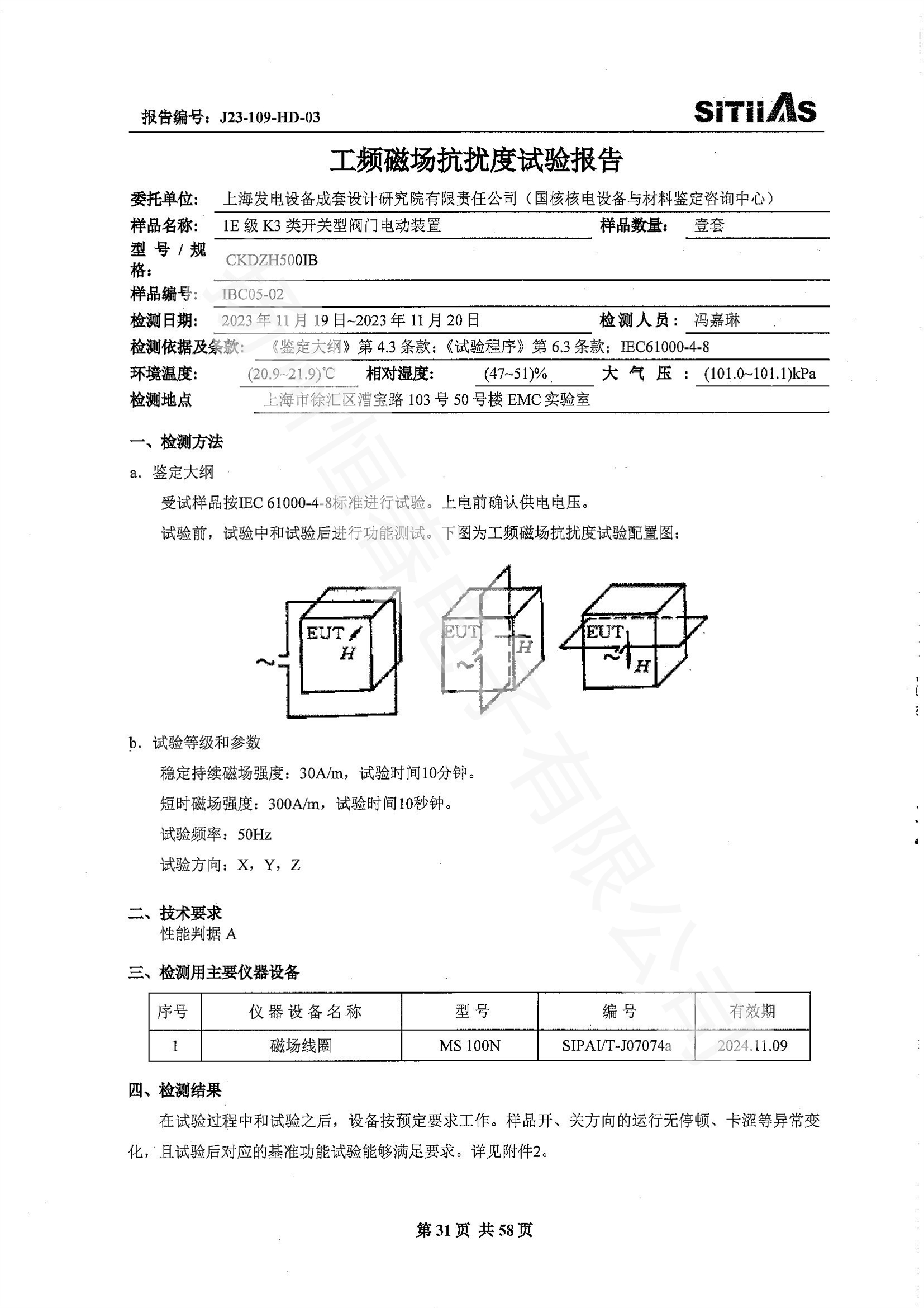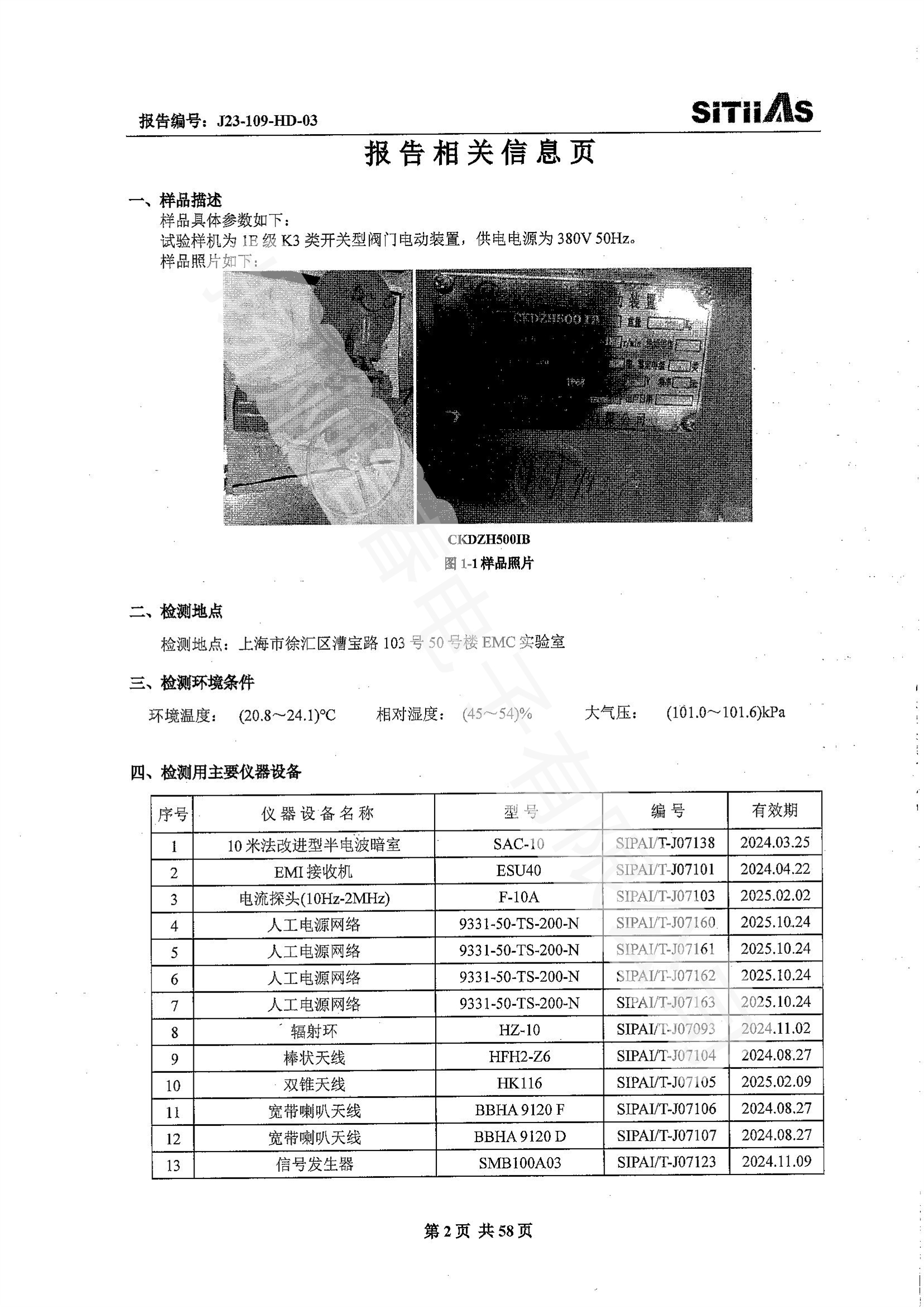 J23-109-HD-02 1E级K3类调节型阀门电动装置EMC试验报告