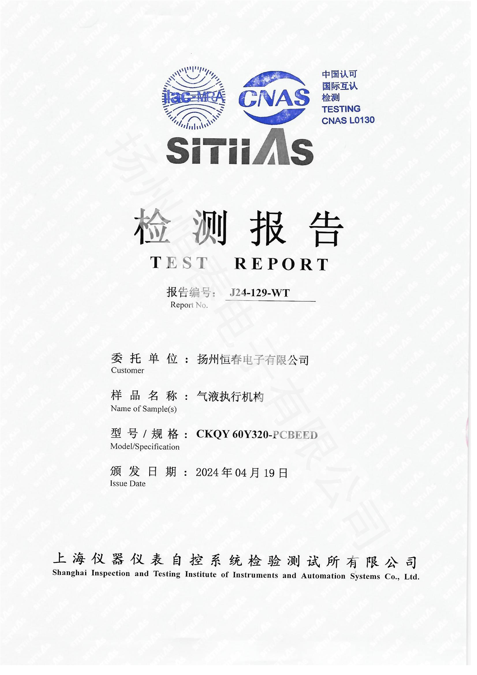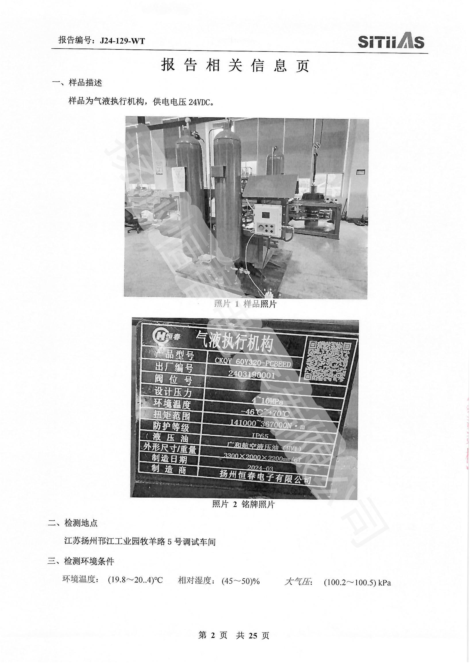 J24-312-WT 气液执行机构检测报告