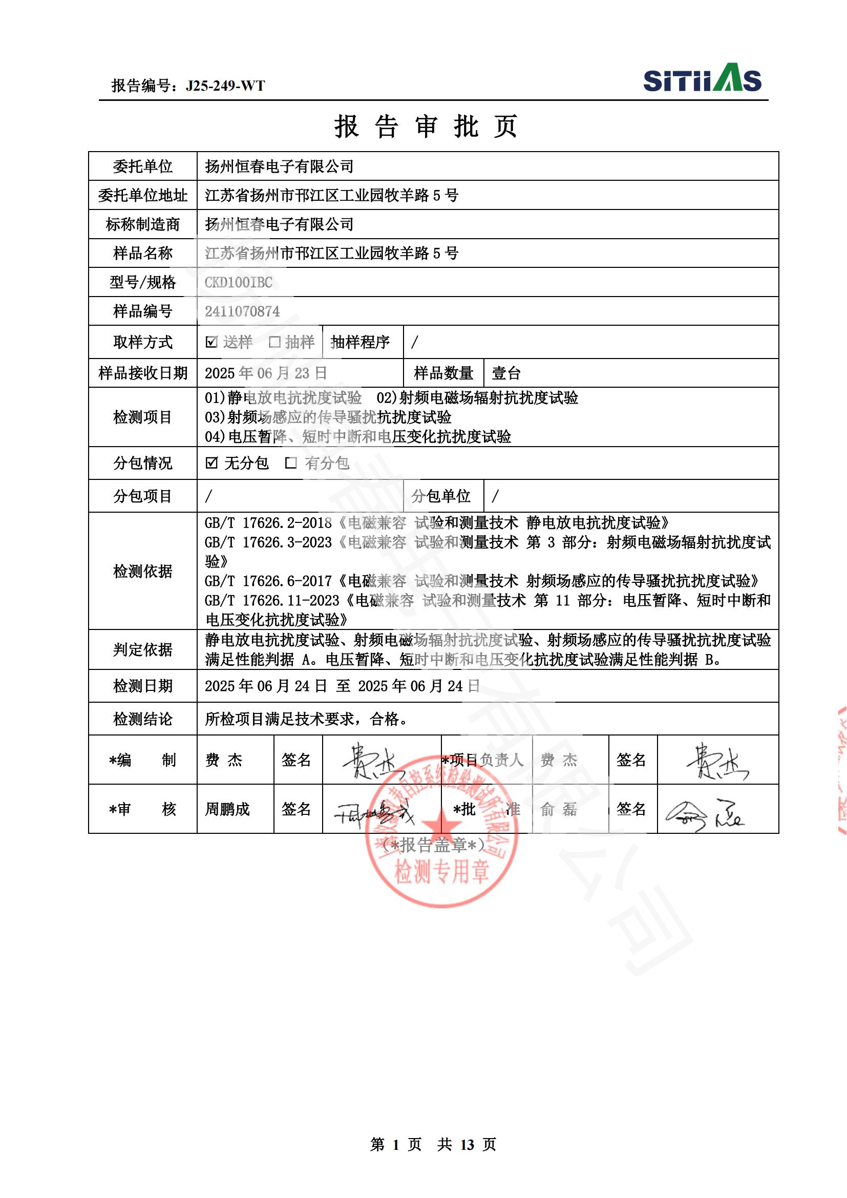 J25-249-WT 检测报告