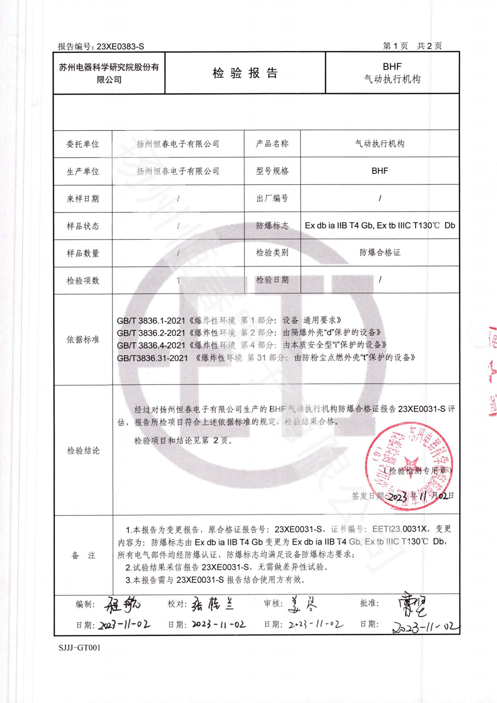22XE0174-S CKQY防爆合格证试验报告