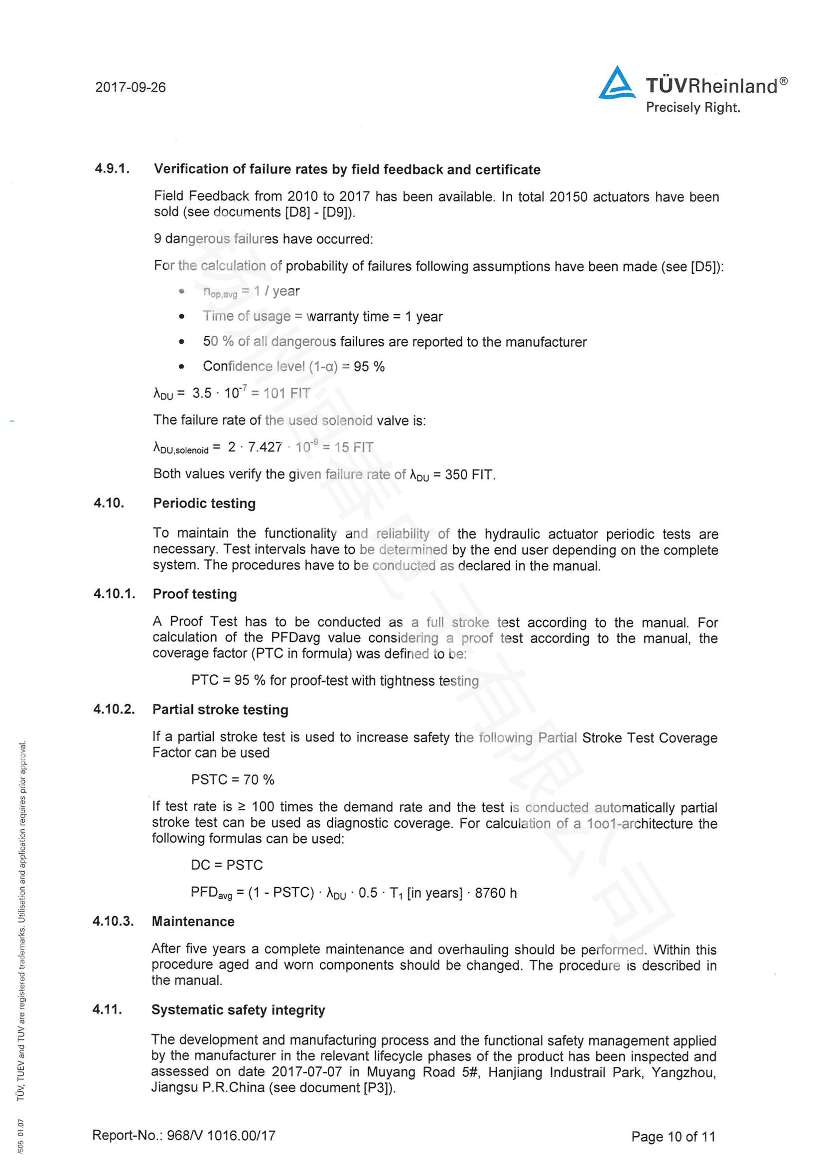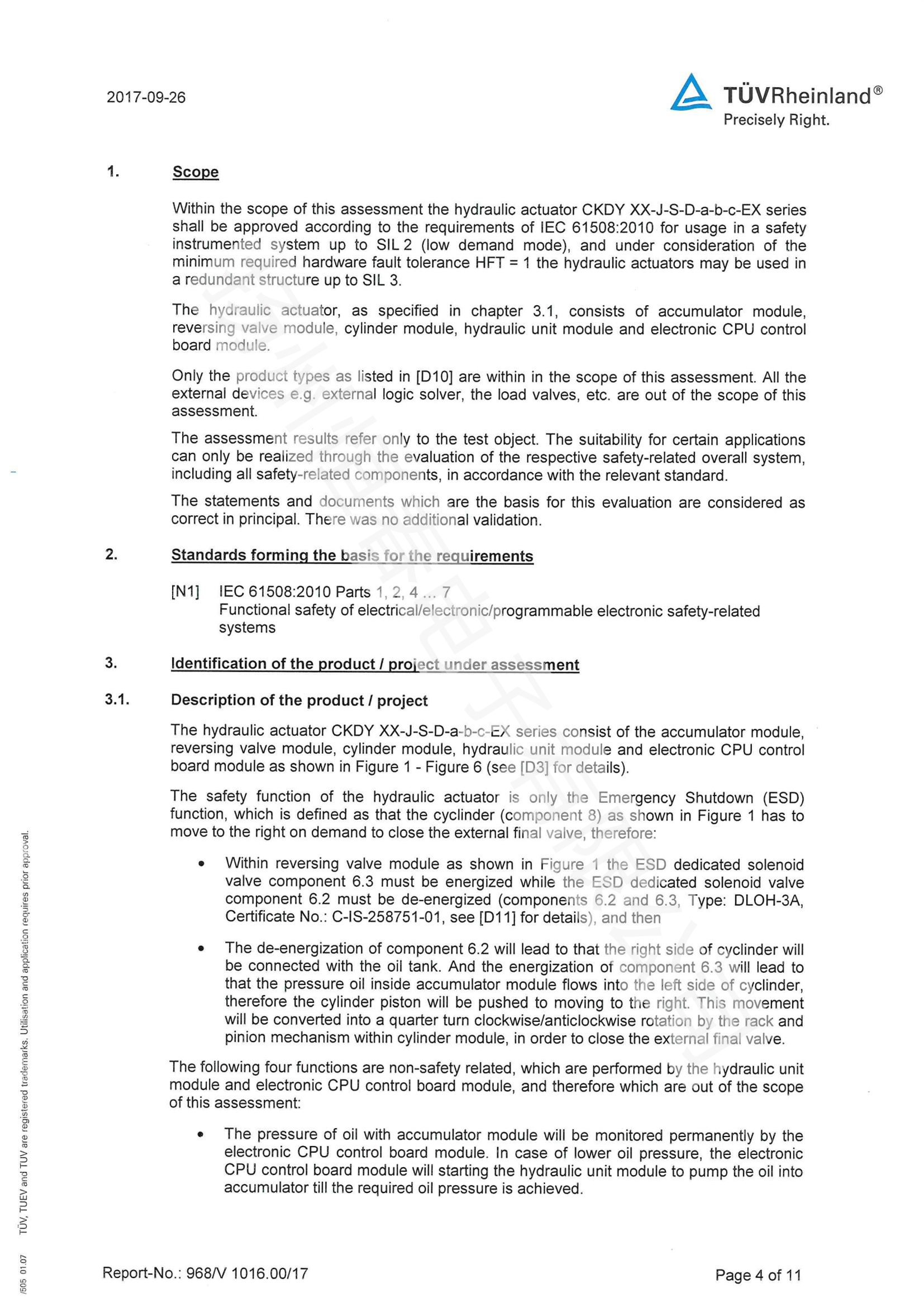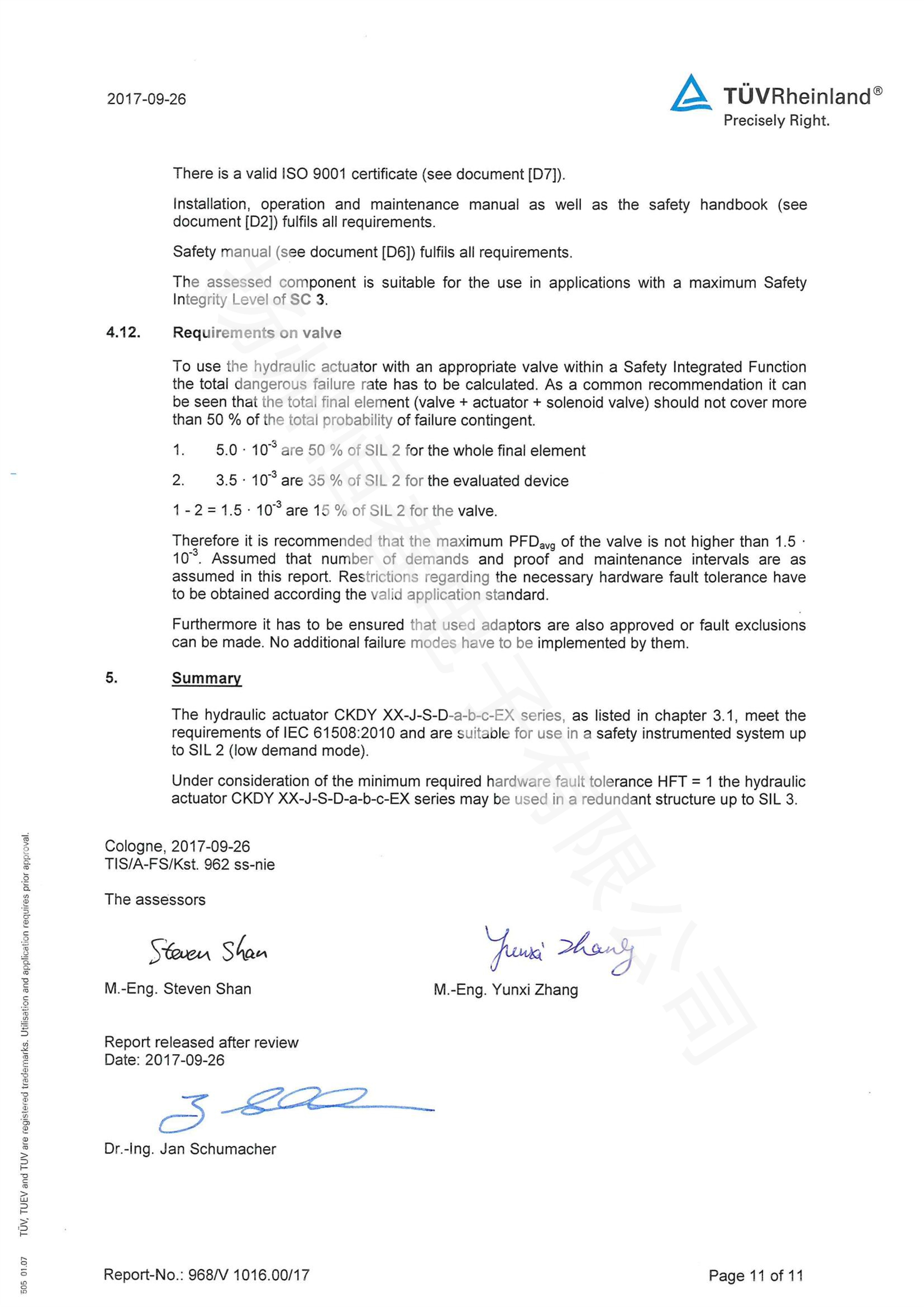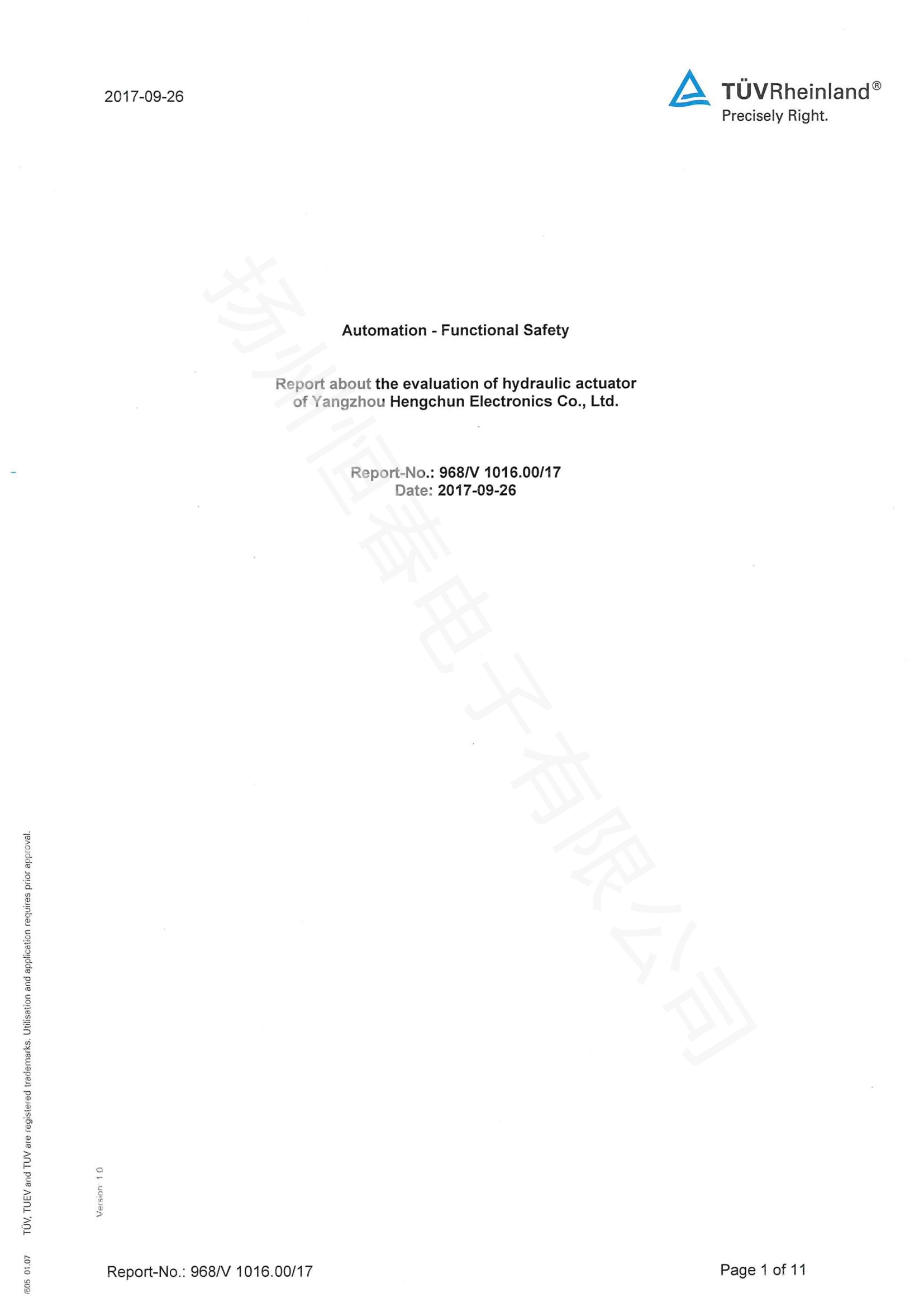 TUV SIL检测报告 电液执行机构