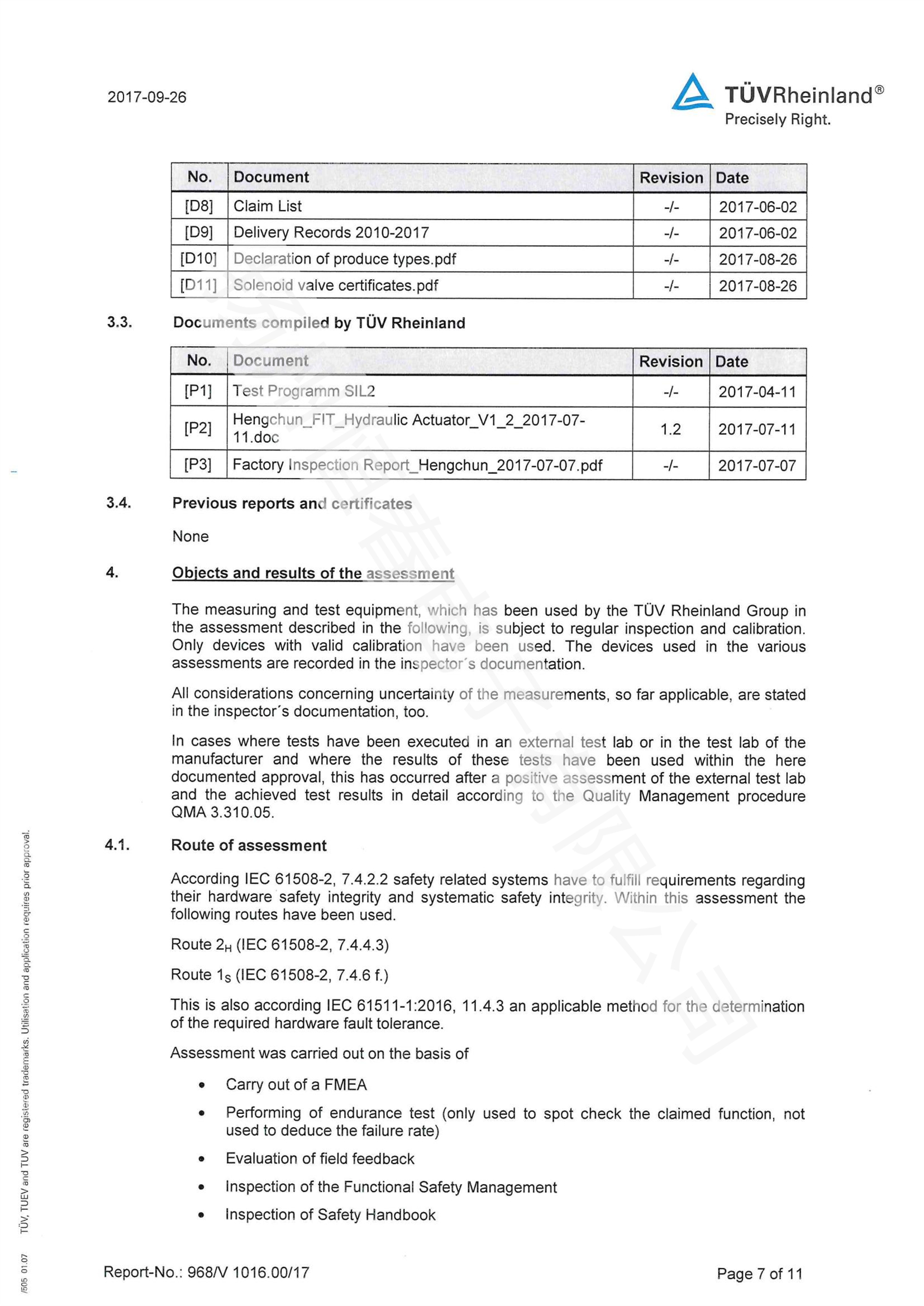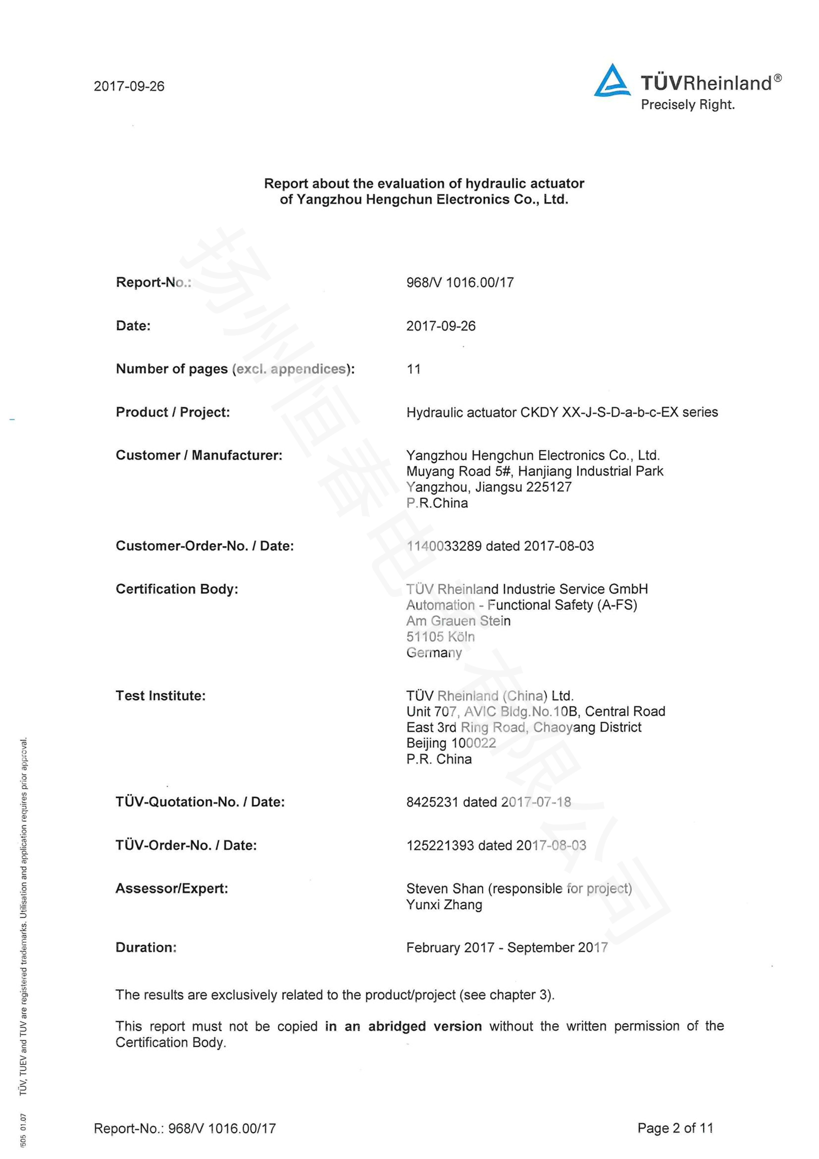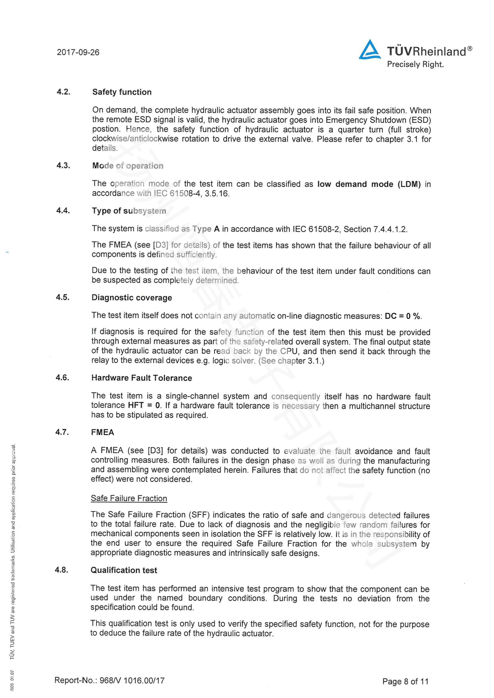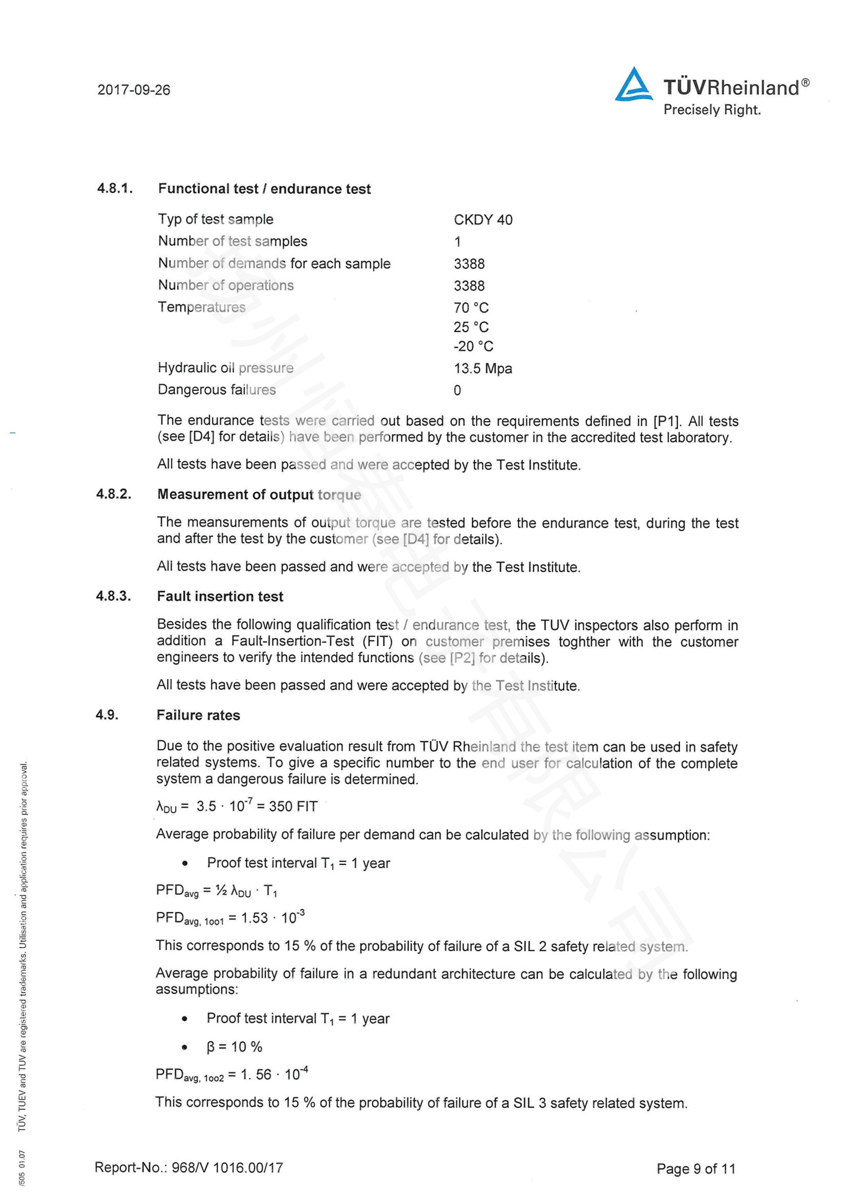 TUV SIL检测报告 电液执行机构