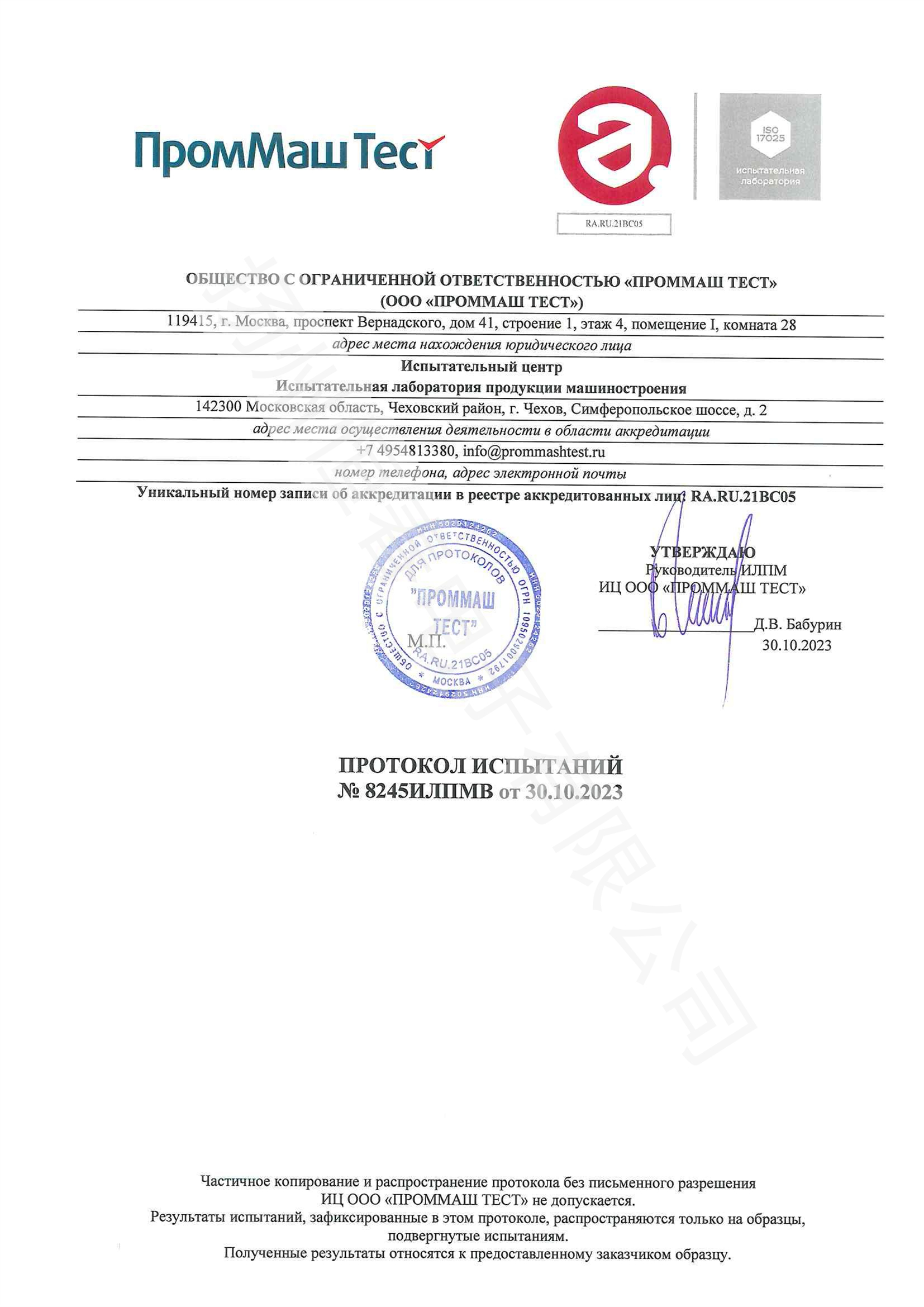 NO.8245ИЛПМВ Test report No.8245ИЛПМВ