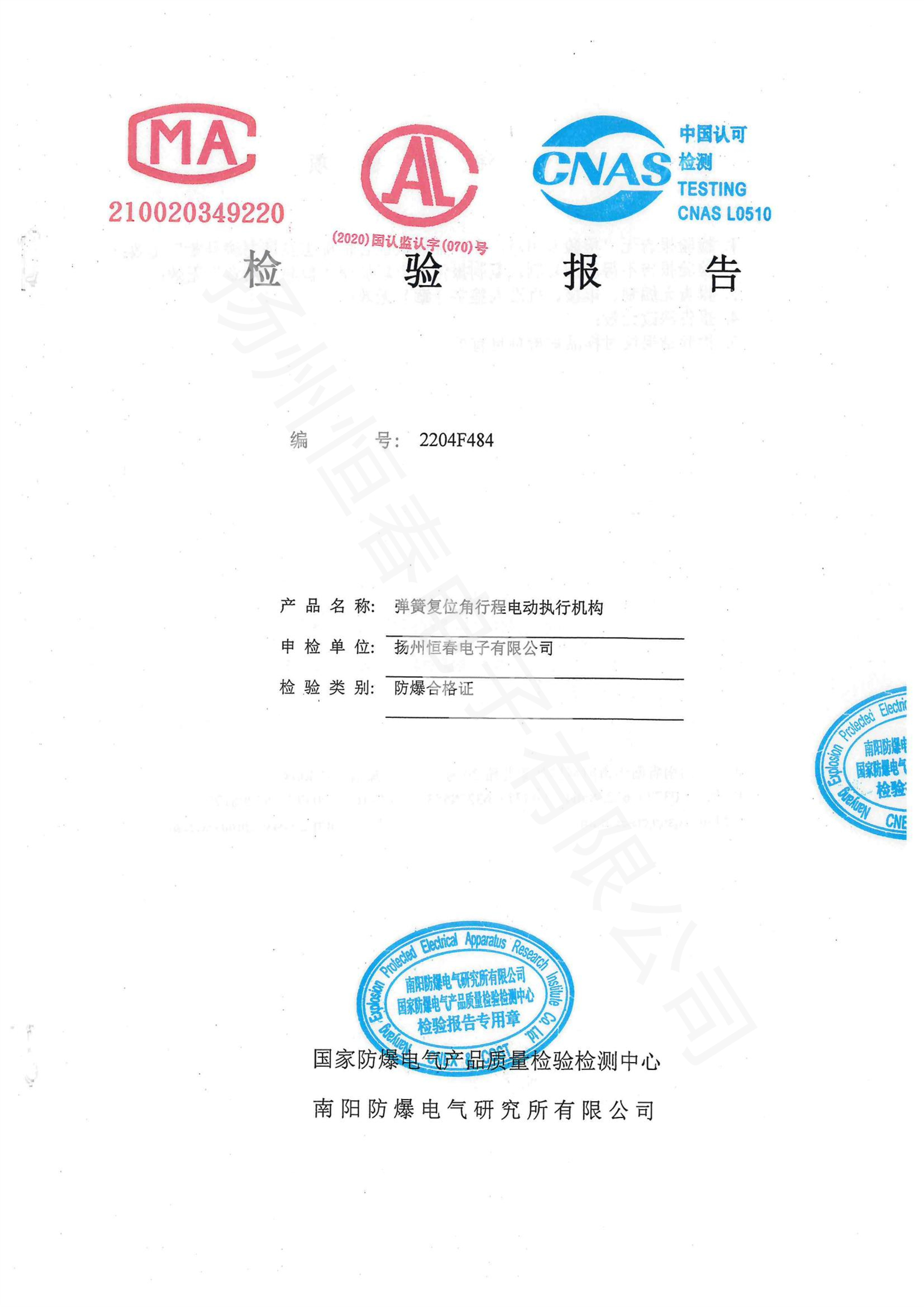 2204F484 弹簧复位防爆检测